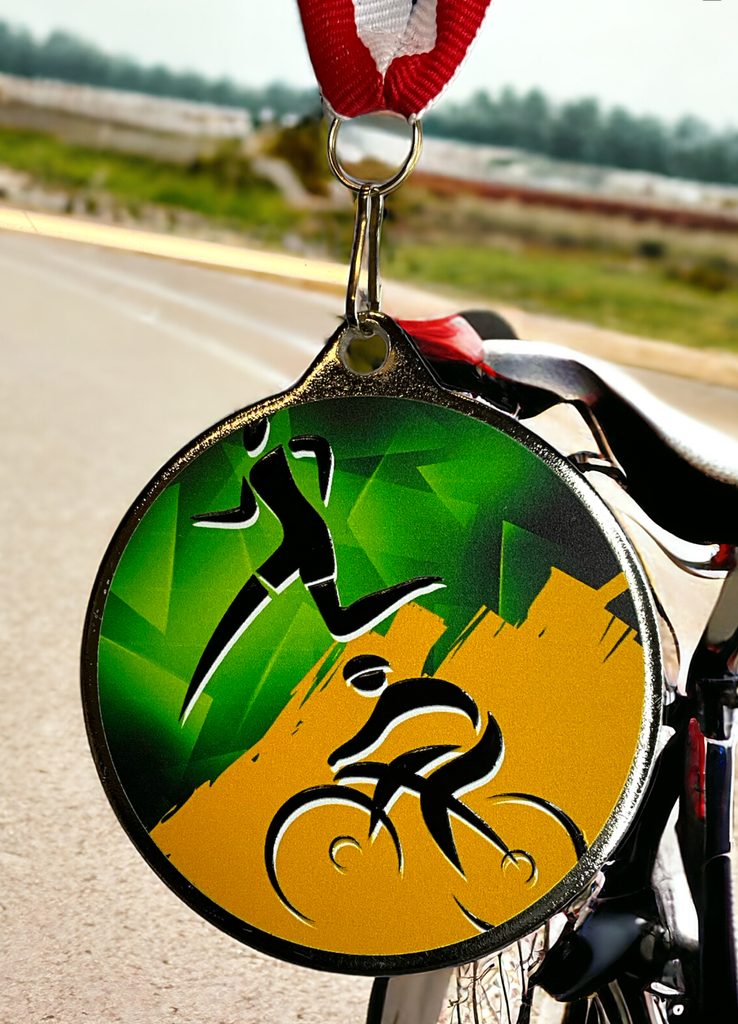 Kovová medaile s UVHQ potiskem a speciálním 3D lakem. Ceny medailí za 1 kus včetně stuhy - trikolóry. Text na zadní straně.