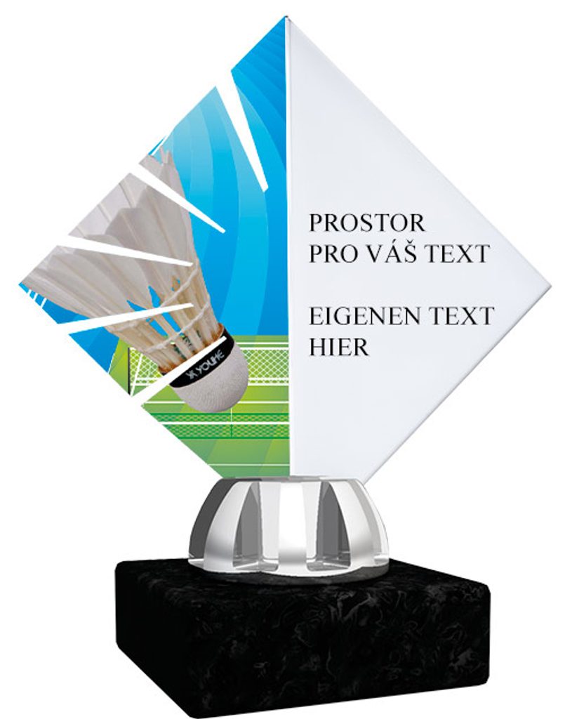 Akrylátový motiv 0.4 cm. V ceně trofeje není zahrnuta cena štítku. Výšky trofejí jsou orientační. Jednostranný tisk.