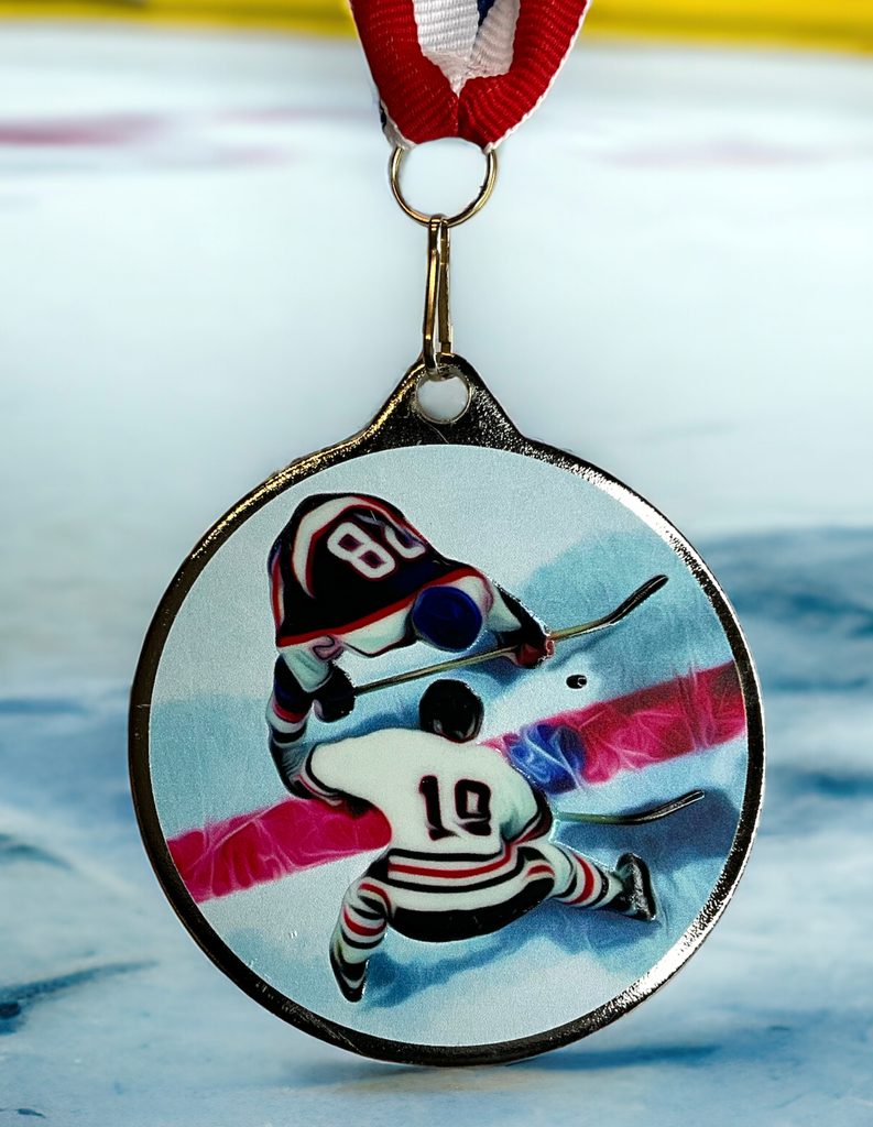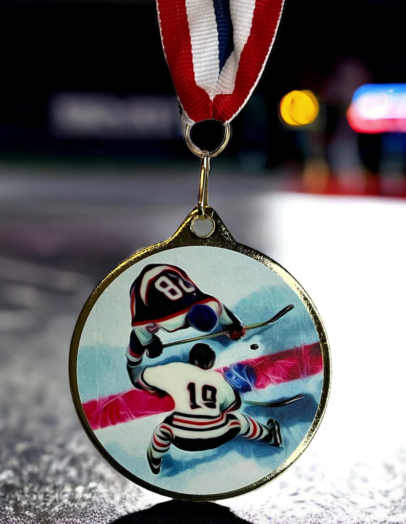 Kovová medaile s UVHQ potiskem a speciálním 3D lakem. Ceny medailí za 1 kus včetně stuhy.