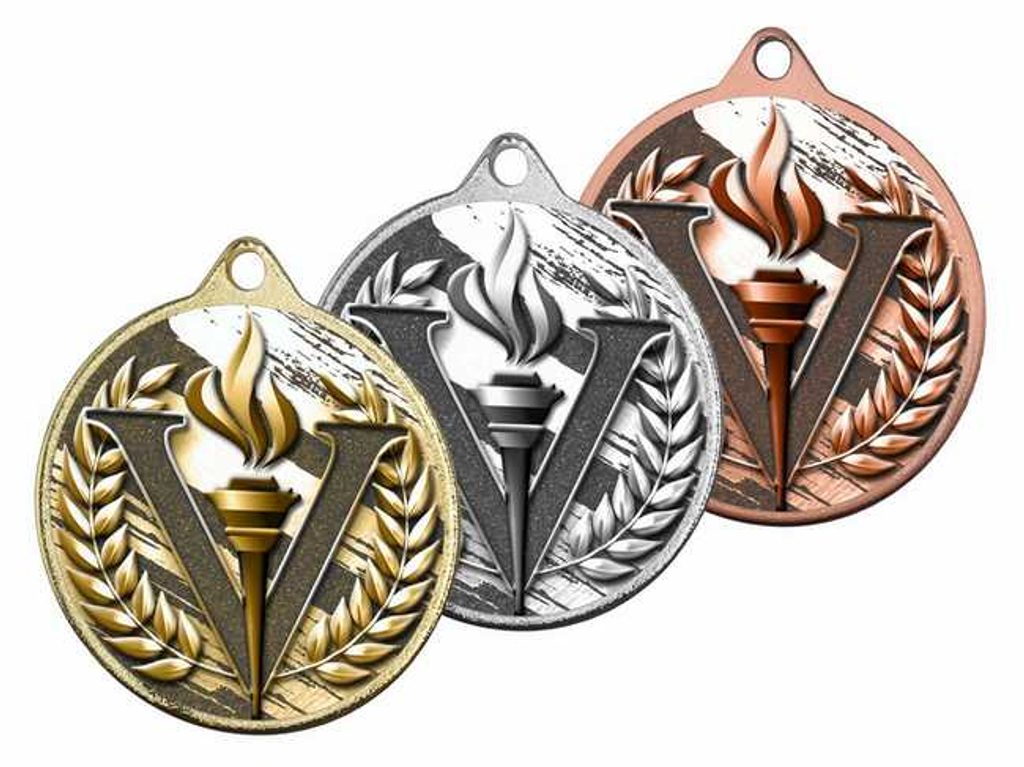 Kovová medaile s UVHQ potiskem a speciálním 3D lakem. Ceny medailí za 1 kus včetně stuhy - trikolóry. Text na zadní straně.