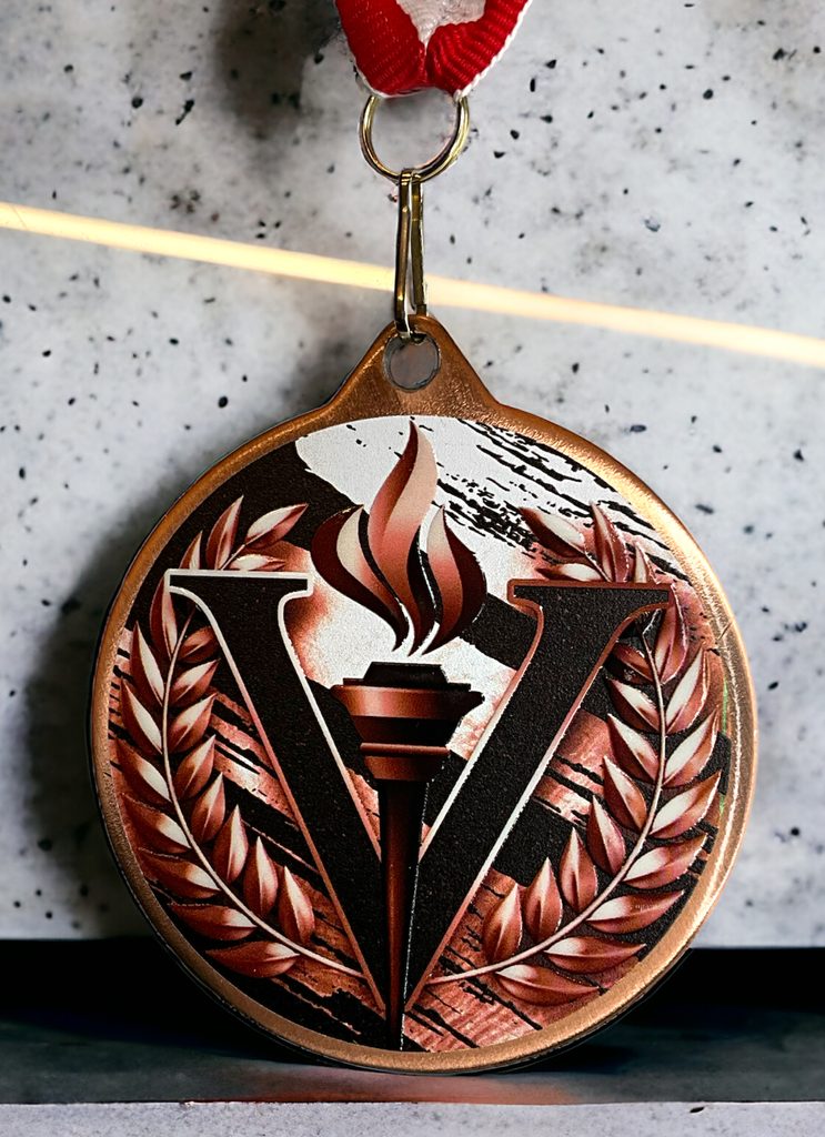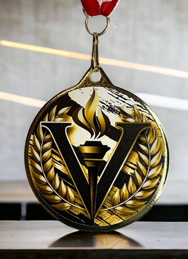 Kovová medaile s UVHQ potiskem a speciálním 3D lakem. Ceny medailí za 1 kus včetně stuhy.
