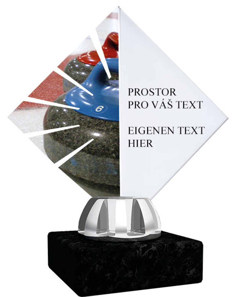 Akrylátová trofej. V ceně trofeje není zahrnuta cena štítku. Akrylátový motiv 0.6 cm. Oboustranný tisk. Držák motivu A-zlato, B…