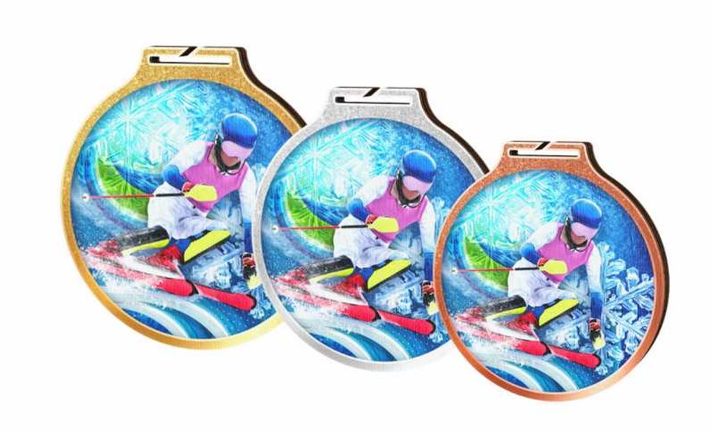 Dřevěná medaile s potiskem v barvě zlato 9cm - stříbro 8cm - bronz 7cm.
