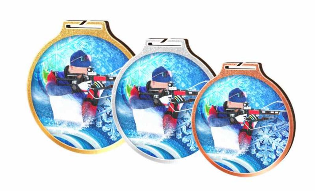 Dřevěná medaile s potiskem v barvě zlato 9cm - stříbro 8cm - bronz 7cm.