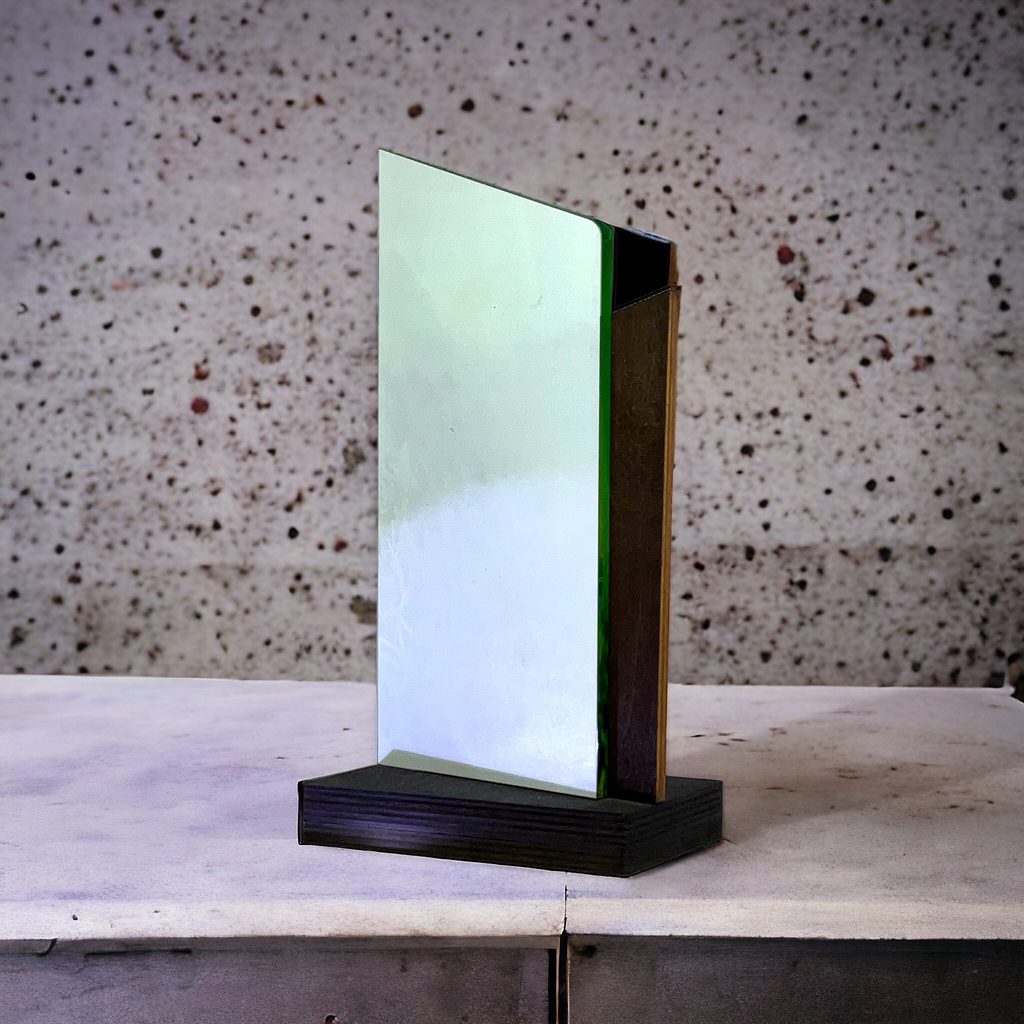 Dřevěná plaketa - Kombinace 6mm březové překližky a akrylátového skla + 20mm podstavec březová překližka.