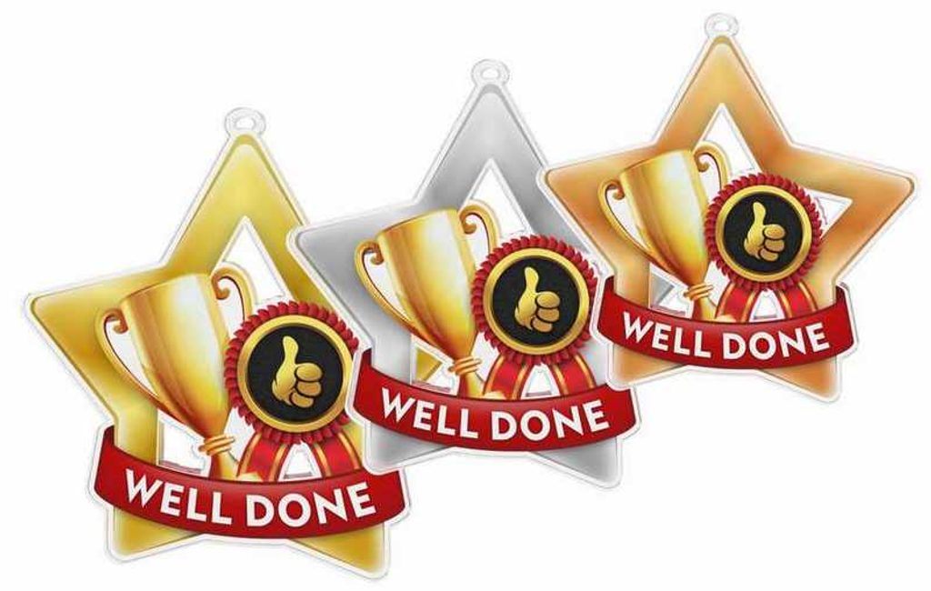 Akrylátová medaile s potiskem v barvě zlato 8cm / stříbro 7cm / bronz 6cm. Tloušťka 3 mm. Cena medaile za 1 kus včetně stuhy.