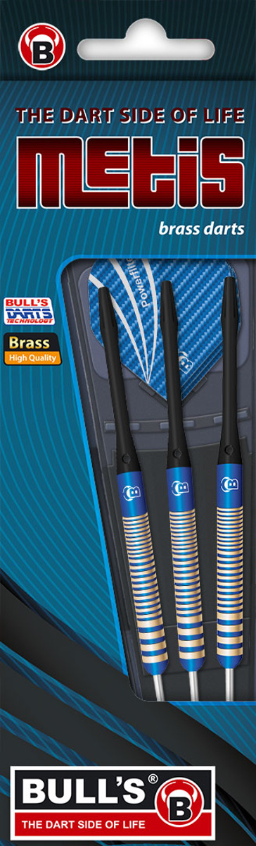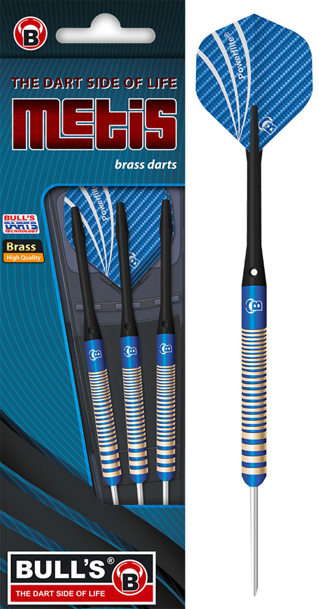 Steelové šipky Bull's Metis jsou mosazné šipky s barrely s modrými proužky. Šipky jsou vhodné především pro začátečníky.