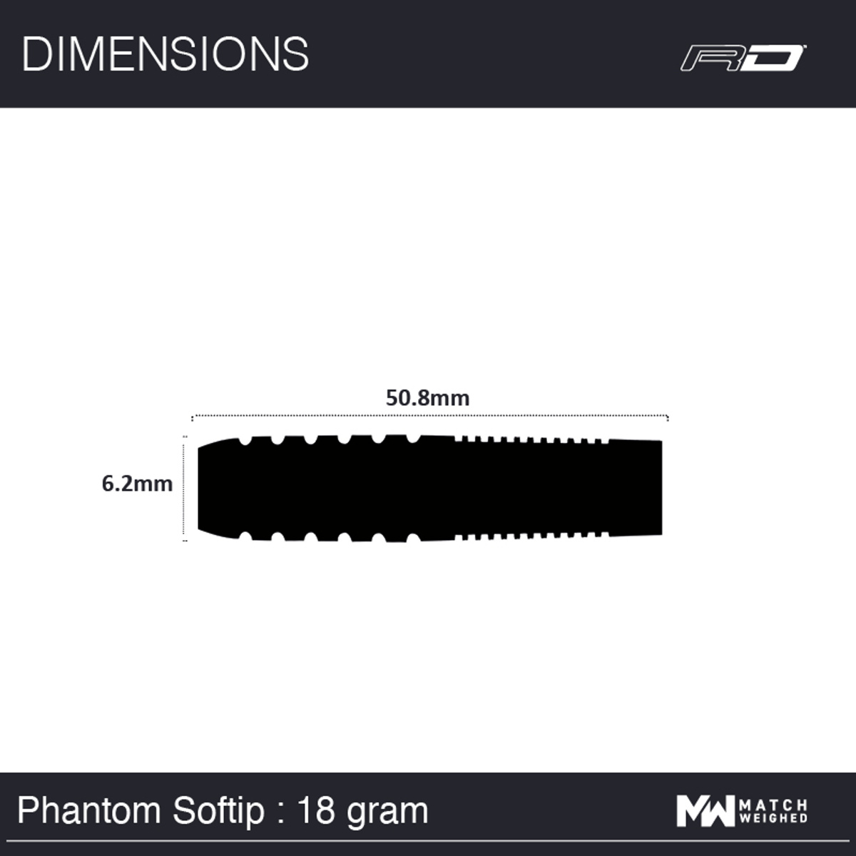 Softové šipky Red Dragon Phantom jsou wolframové šipky (90% tungsten) s elegantními černými barrely. Barrely jsou doplněny nylonovými násadkami Nitrotech a letkami Red Dragon.