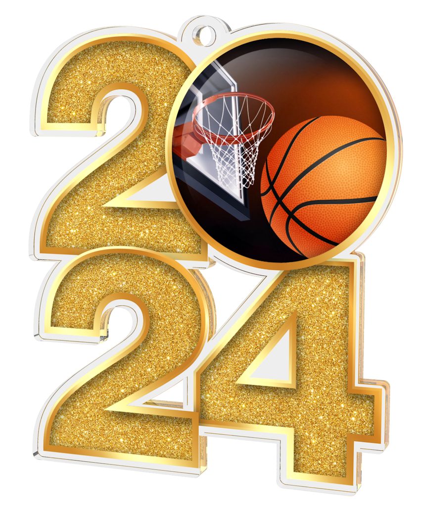 Akrylátová medaile MDA2024M06 | Basketball Barva: zlato, Stuha: ST12