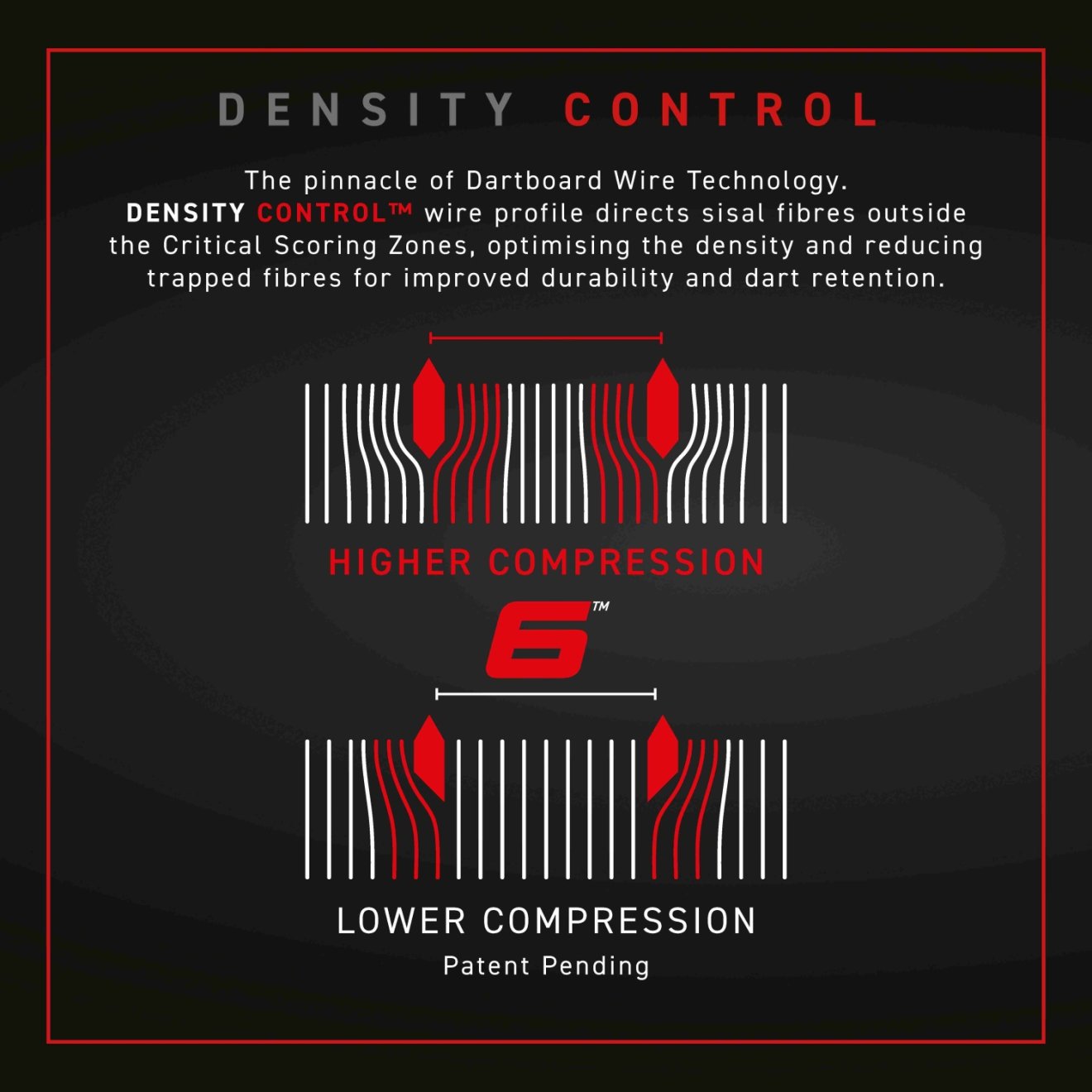 - Density Control™ - Vrchol technologie šipkových drátů. Profil drátu Density Control™ směruje sisalová vlákna mimo kritické bodovací zóny, čímž optimalizuje hustotu a snižuje množství zachycených vláken pro lepší trvanlivost a udržení šipek.