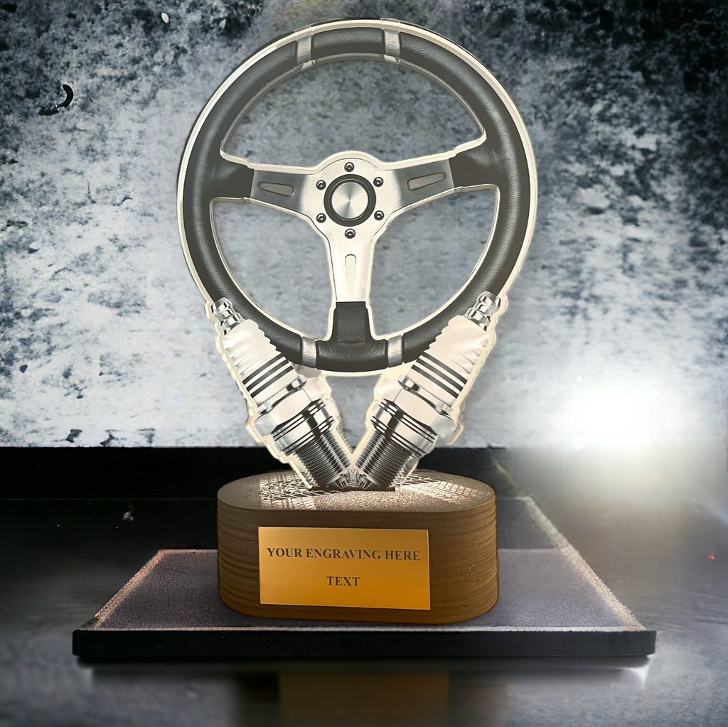 Akrylátová trofej s dřevěným podstavcem a UV potiskem. V ceně trofeje není zahrnuta cena štítku.