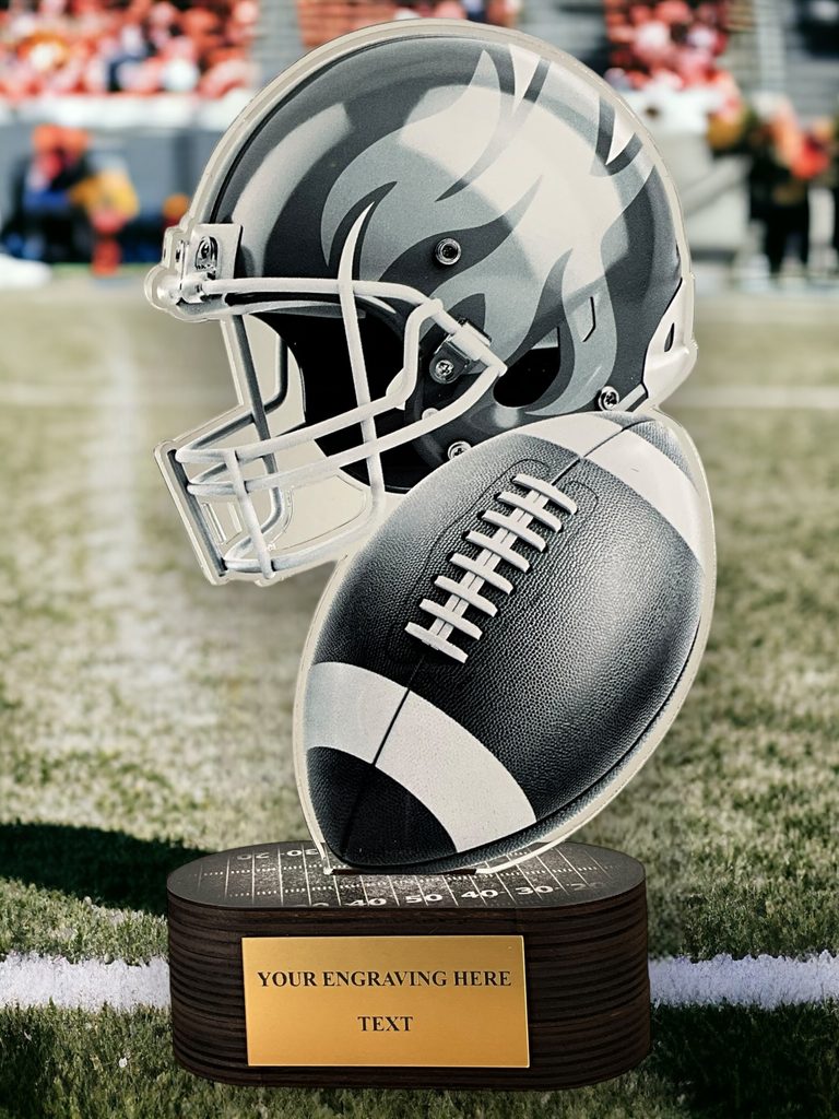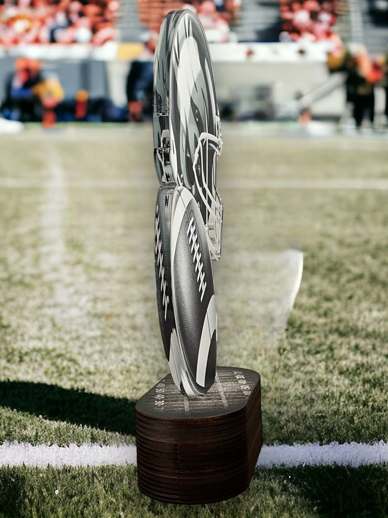 Akrylátová trofej s dřevěným podstavcem a UV potiskem. V ceně trofeje není zahrnuta cena štítku.