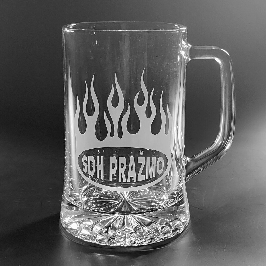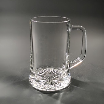Půllitr s uchem ze silnostěnného skla a prostorem pro umístění dekoru.