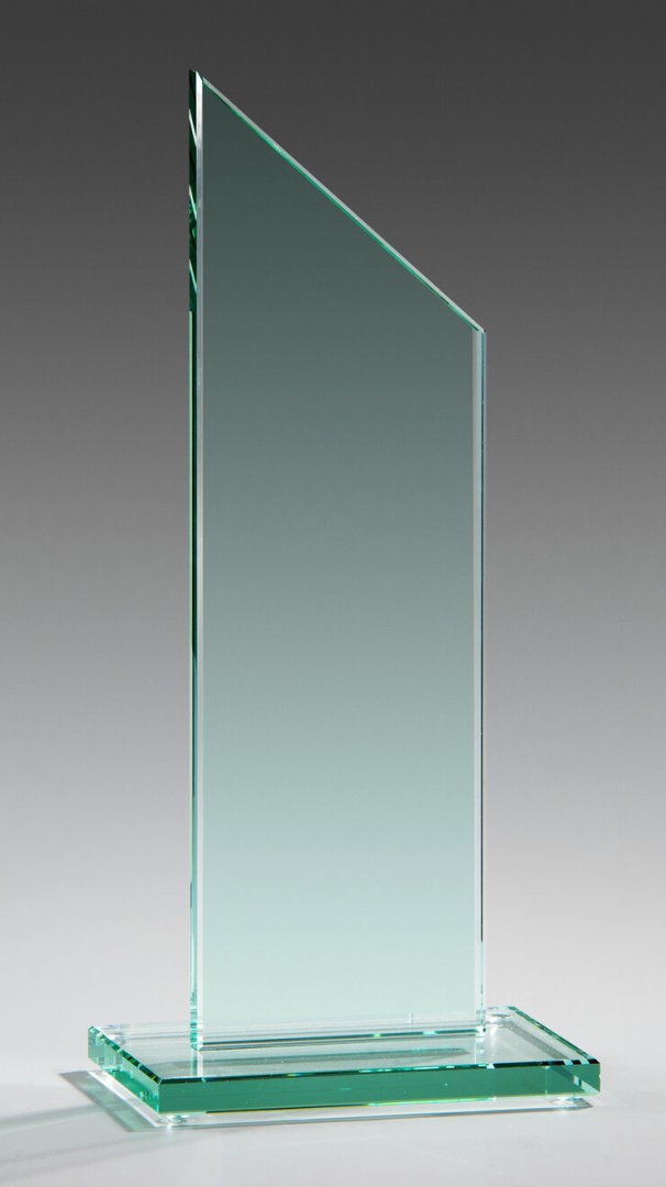 Trofej z 10 mm silného zeleného skla v pěti velikostech s velkým prostorem pro umístění dekoru.