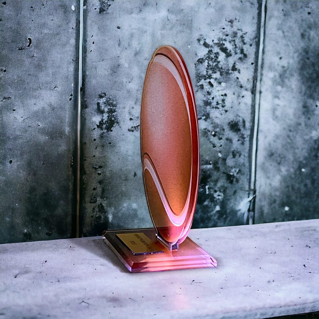 Akrylátová trofej o tloušťce 0,6cm s akrylátovým podstavcem o tloušťce 0,8cm. Možnost vložení štítku na podstavec. V ceně poháru…