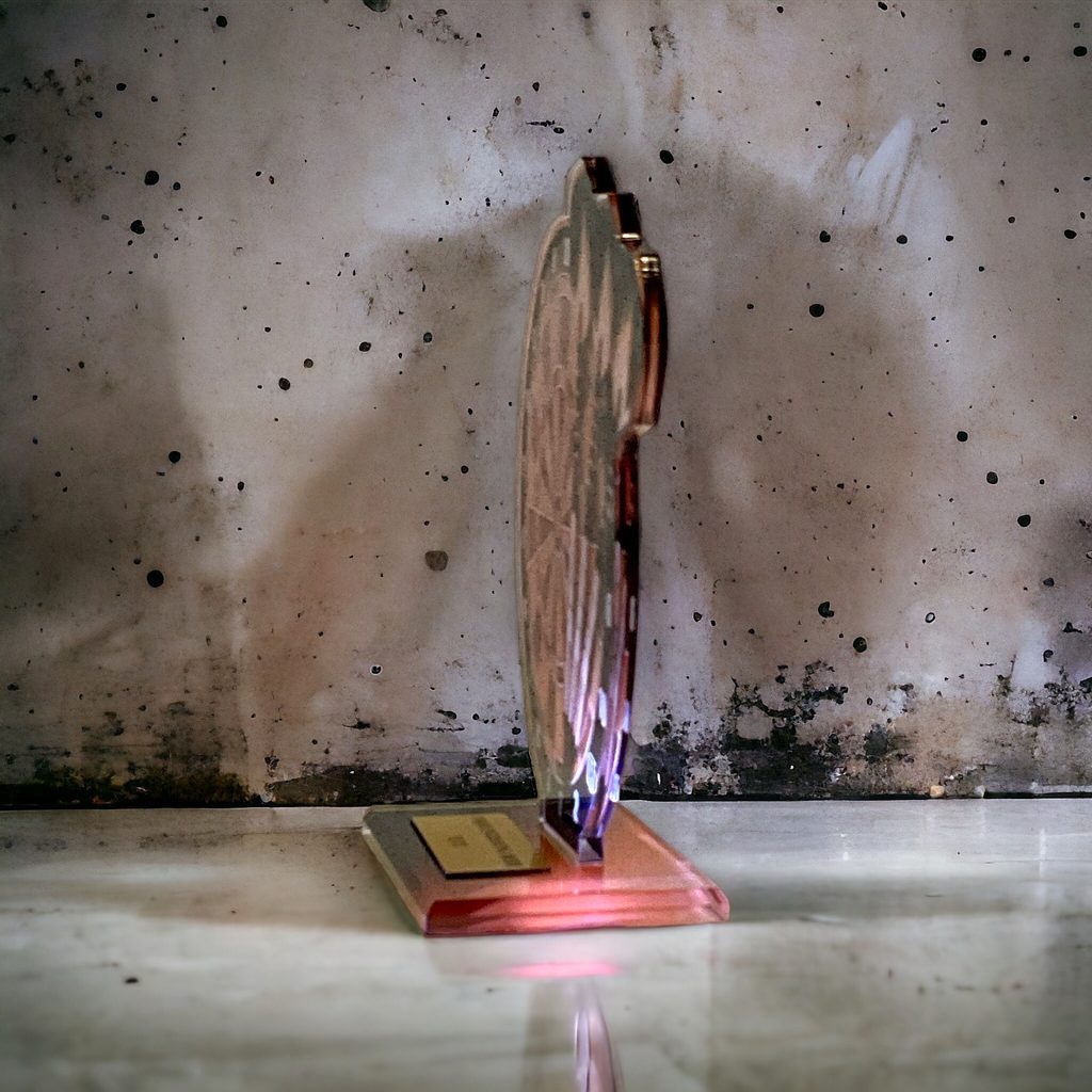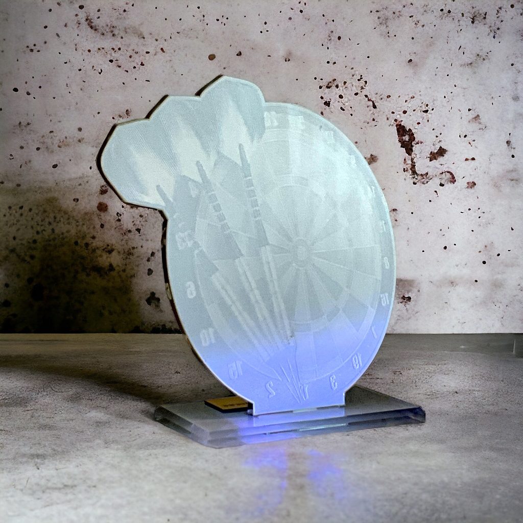 Akrylátová trofej o tloušťce 0,6cm s akrylátovým podstavcem o tloušťce 0,8cm. Možnost vložení štítku na podstavec. V ceně poháru není zahrnuta cena štítku. Šířka trofeje je pouze orientační, může se měnit v závislosti na motivu trofeje.