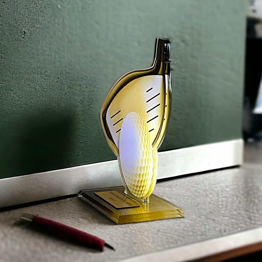 Akrylátová trofej AWF M32 | Golf Výška cm: 21,5 - Šířka cm: 20,5 - zlatá
