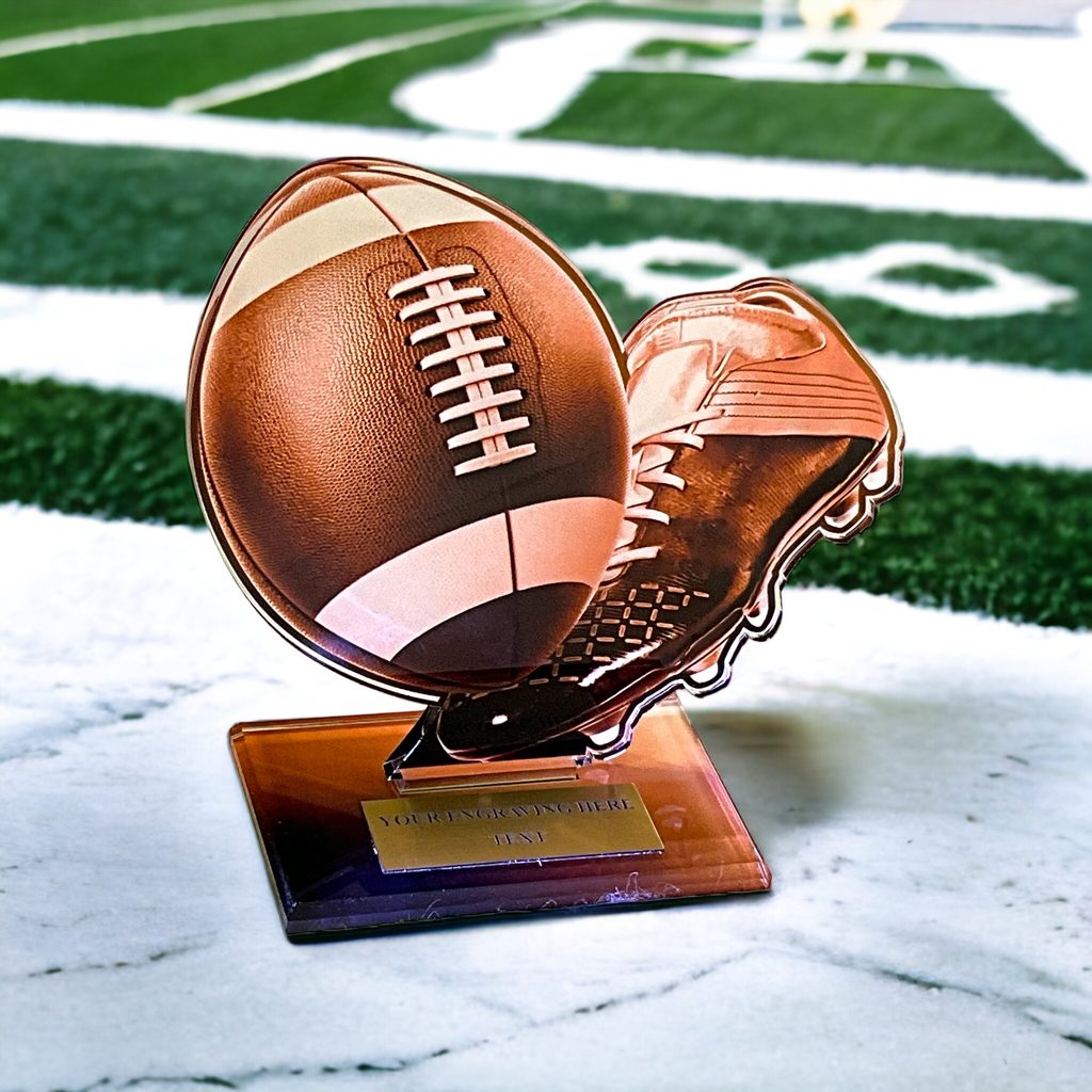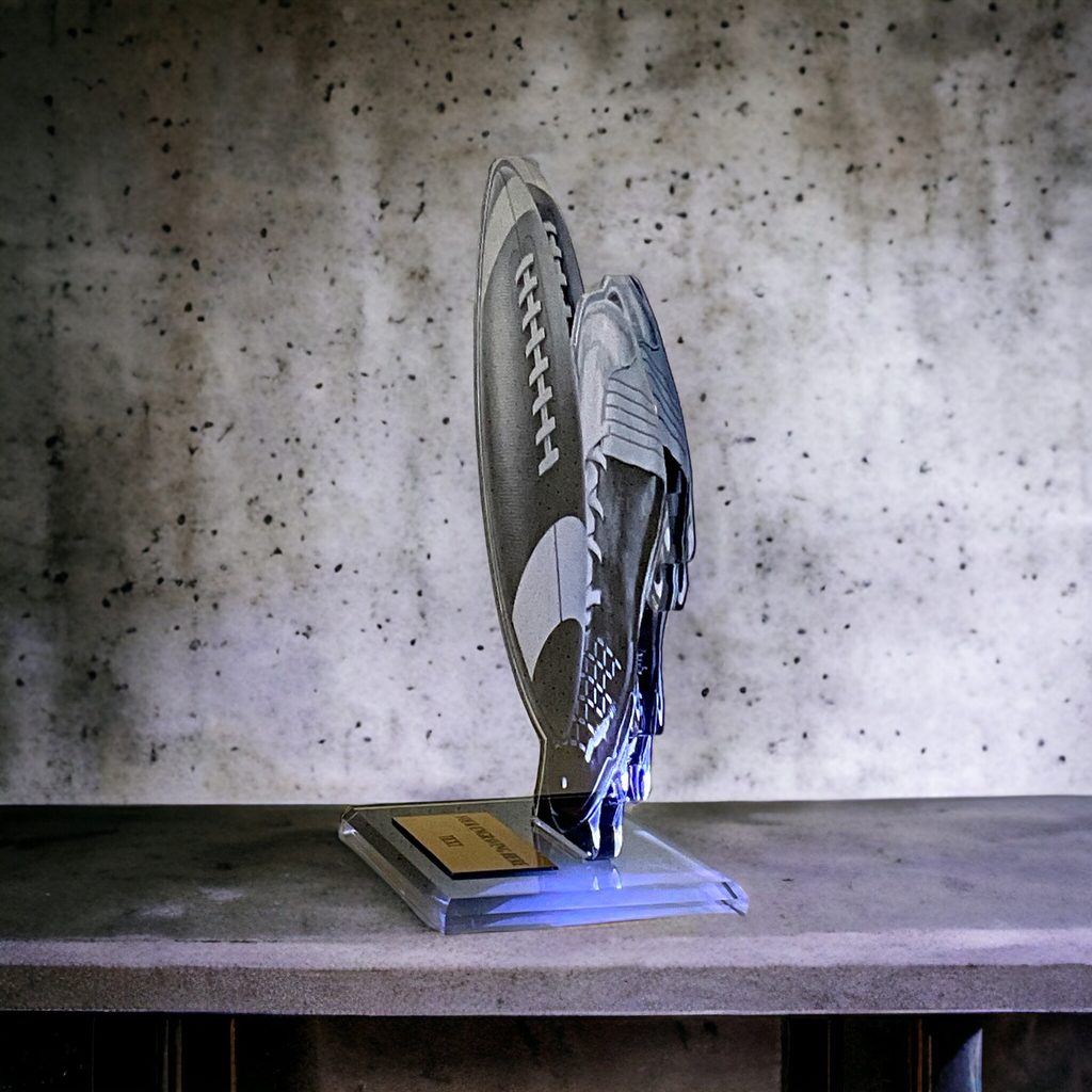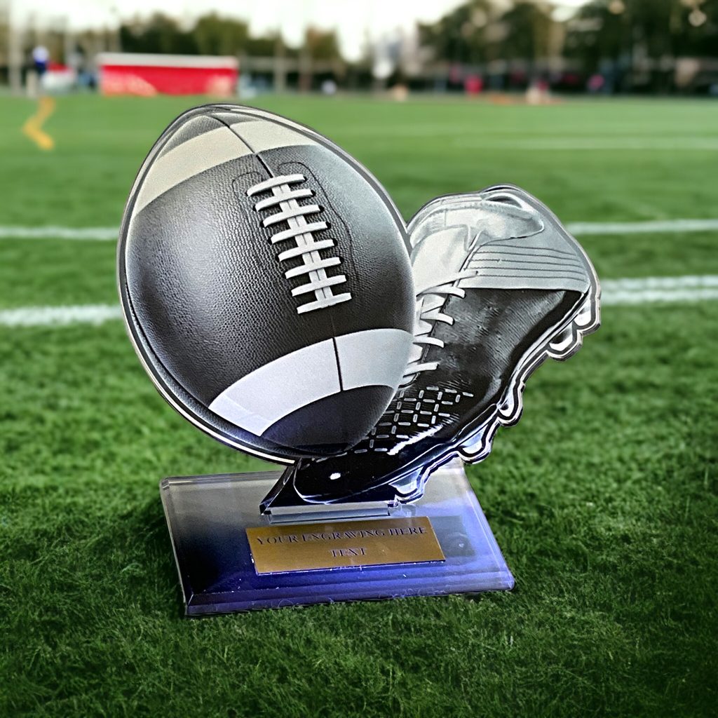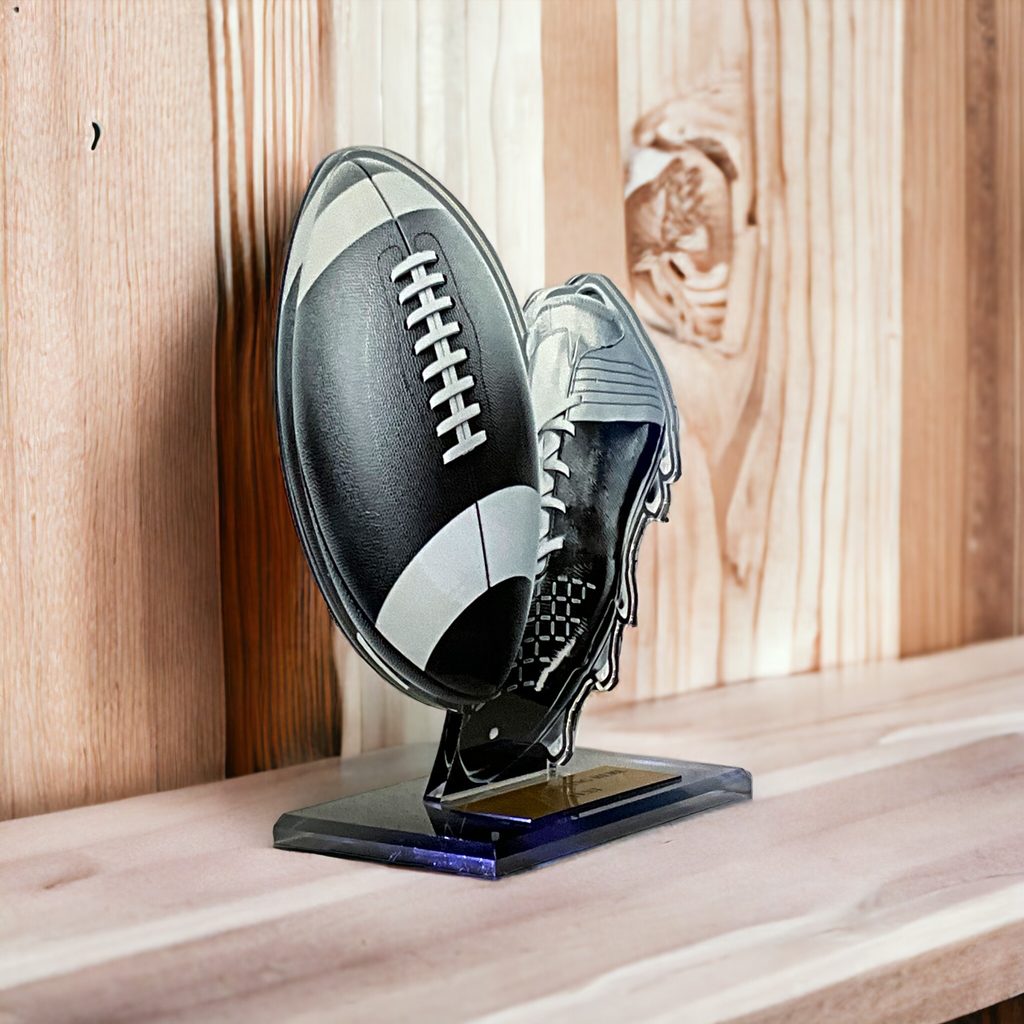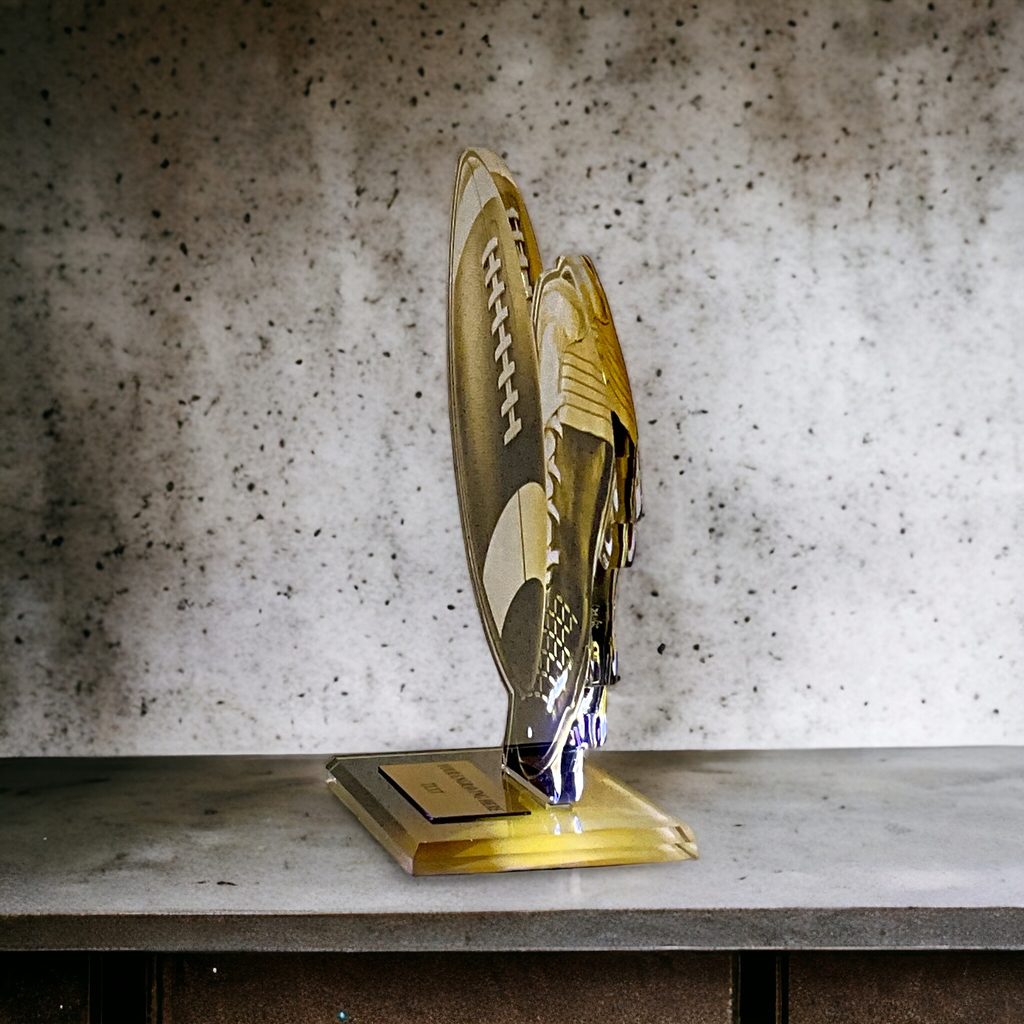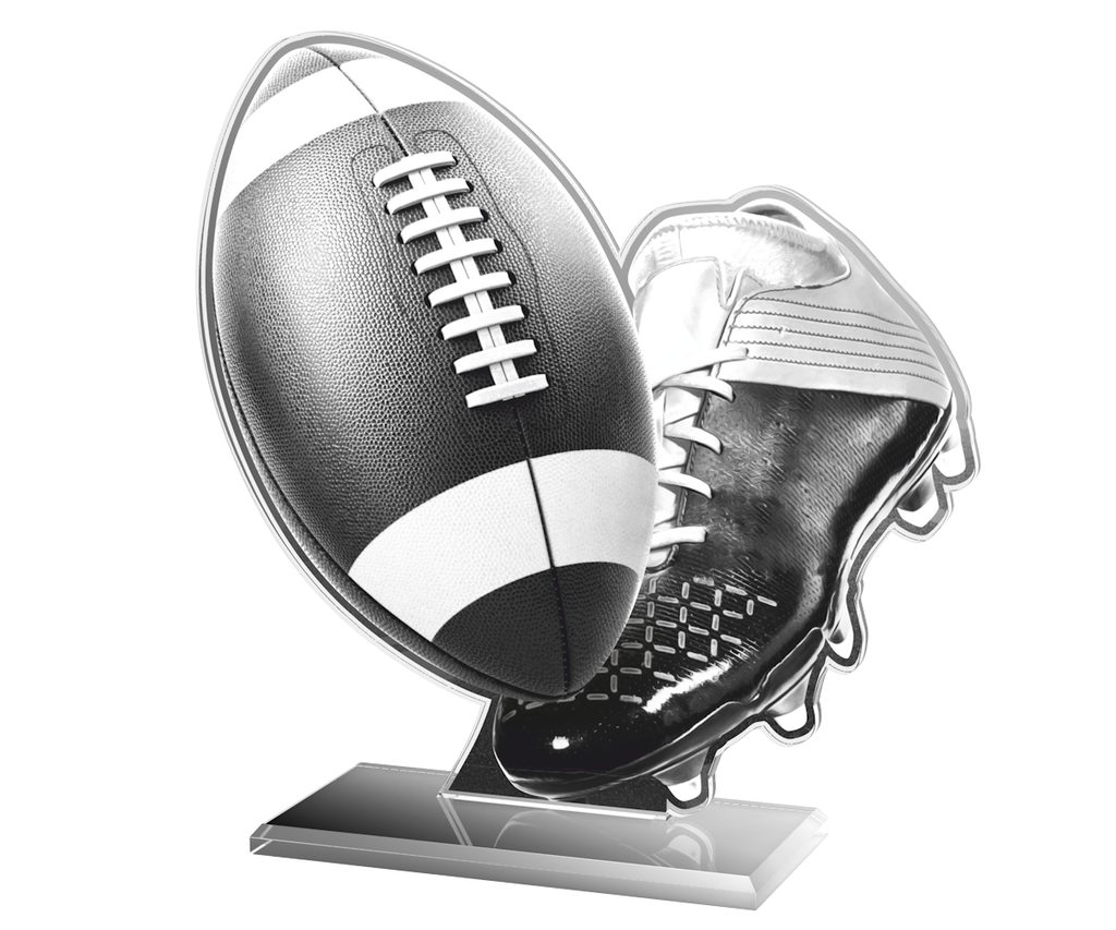 Akrylátová trofej AWF M35 | Americký fotbal Výška cm: 21,5 - Šířka cm: 20,5 - stříbrná