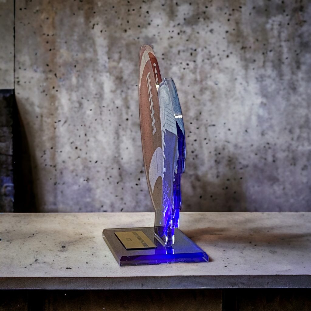 Akrylátová trofej. Skleněný podstavec. Možnost potisknou vlastním logem. Dárkové balení.