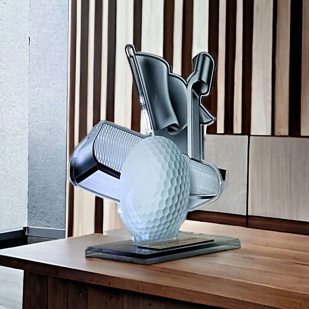 Akrylátová trofej AWF M50 | Golf Výška cm: 15,5 - Šířka cm: 14,5 - plnobarevná
