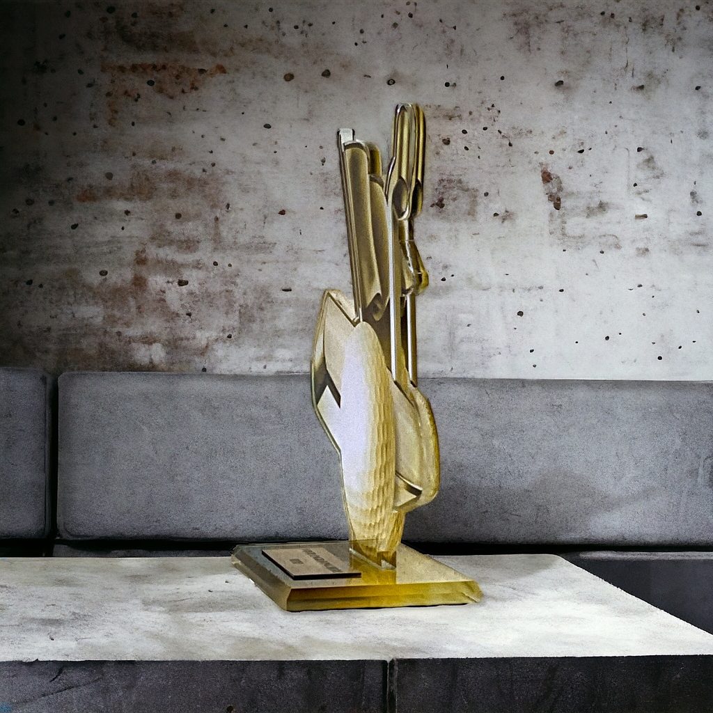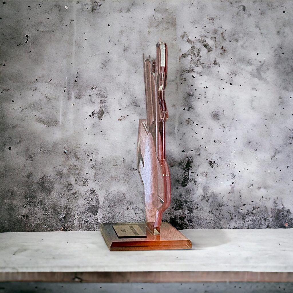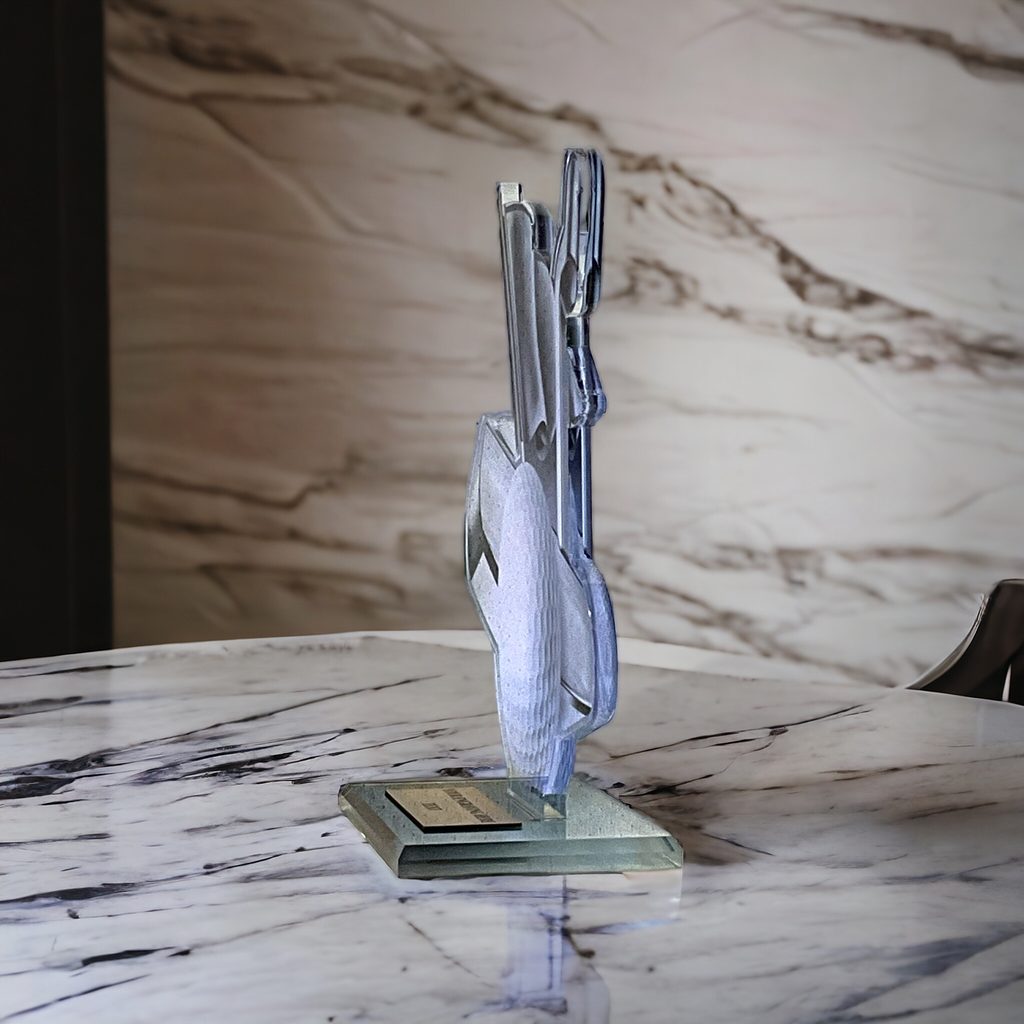 Akrylátová trofej. V ceně trofeje není zahrnuta cena štítku. Akrylátový motiv 0.6 cm. Oboustranný tisk. Držák motivu A-zlato, B…