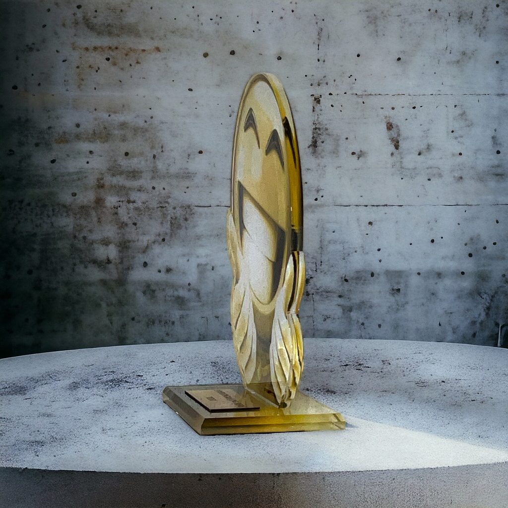 Akrylátová trofej. V ceně trofeje není zahrnuta cena štítku. Akrylátový motiv 0.6 cm. Oboustranný tisk. Držák motivu A-zlato, B…