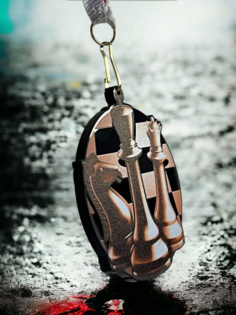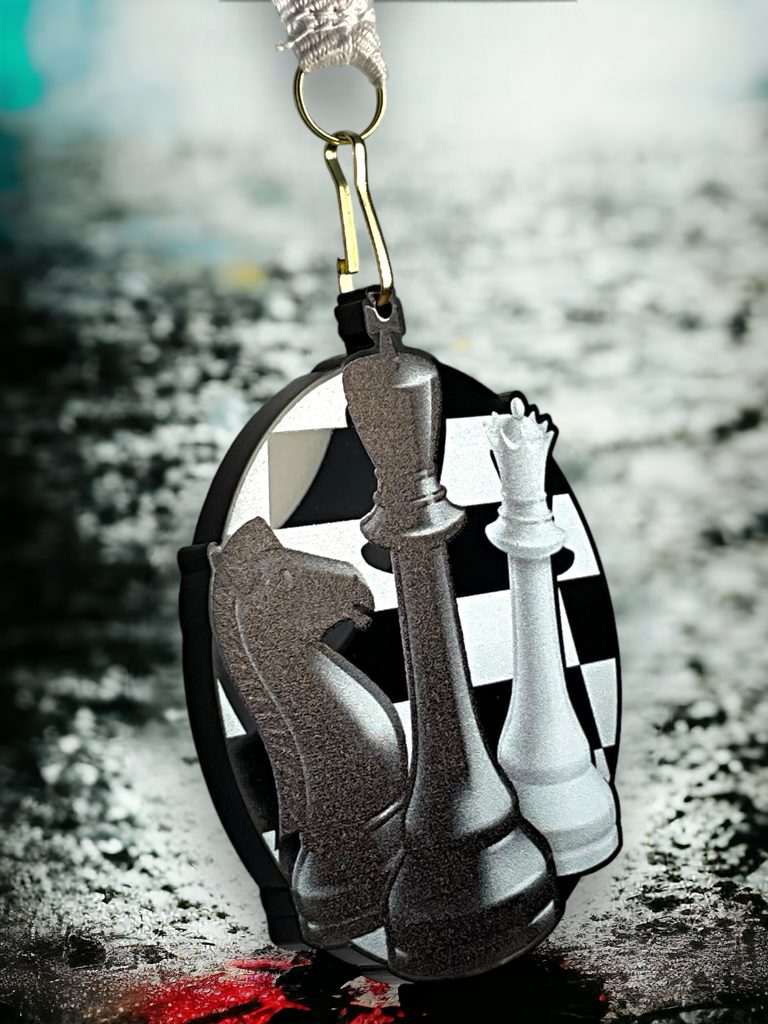 Akrylátová medaile. Tloušťka 0,3 cm. Cena medaile za 1 kus včetně stuhy. Speciální černý lesklý akryl. Speciální vrstvený tisk.