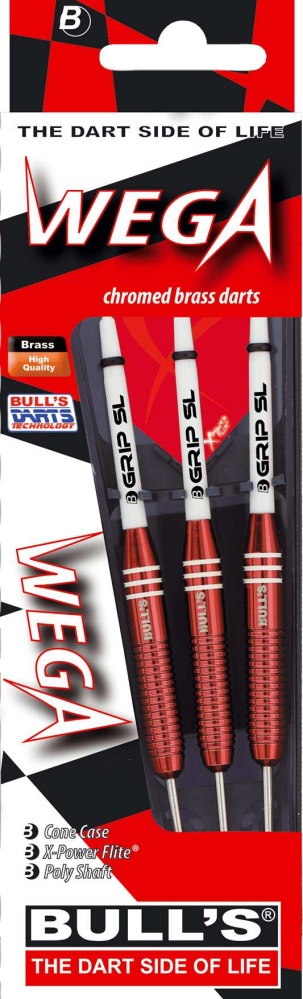 Steelové šipky Bull's Wega jsou šipky s barevným chromováním, které dodává barrelu stylový design. Drážkování zajišťuje bezpečné držení šipky. Barrel zdobí logo Bull's a doplňují jej násadky B-Grip SL a letky X-Power Flite. Baleno v plastovém pouzdře.