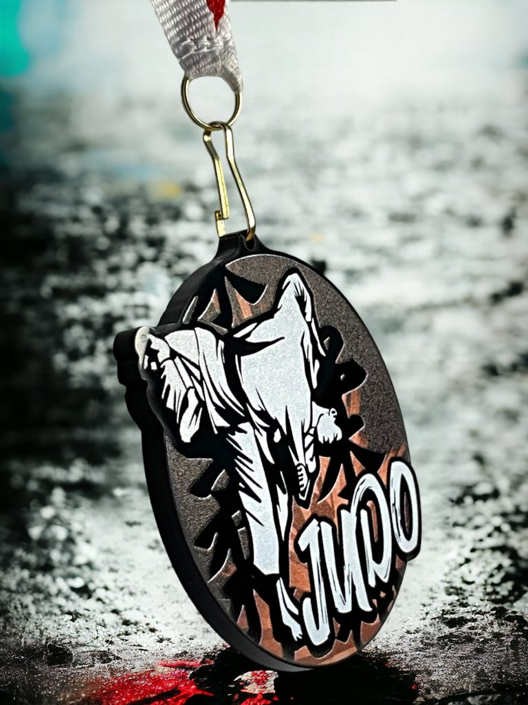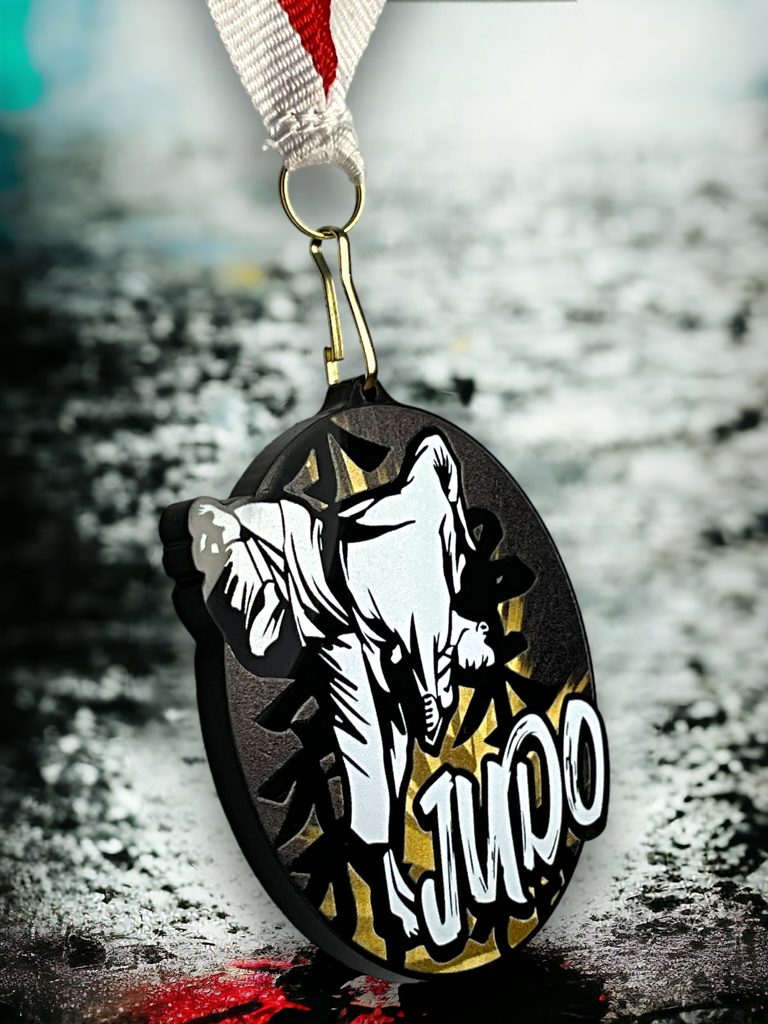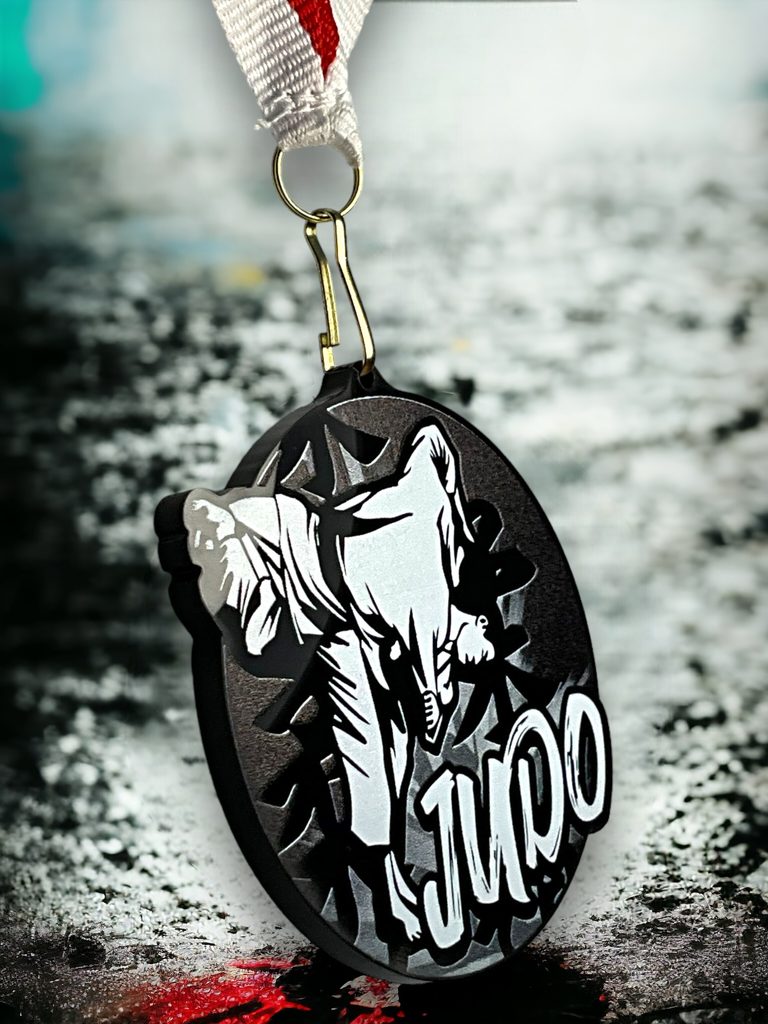 Akrylátová medaile. Tloušťka 0,3 cm. Cena medaile za 1 kus včetně stuhy. Speciální černý lesklý akryl. Speciální vrstvený tisk.
