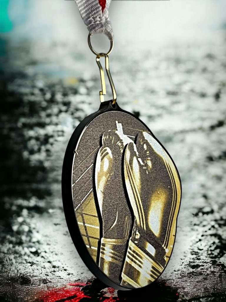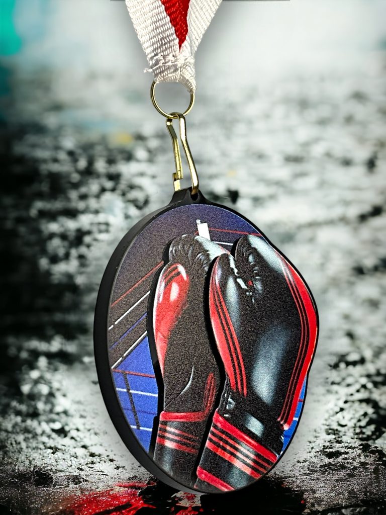 Akrylátová medaile. Tloušťka 0,3 cm. Cena medaile za 1 kus včetně stuhy. Speciální černý lesklý akryl. Speciální vrstvený tisk.