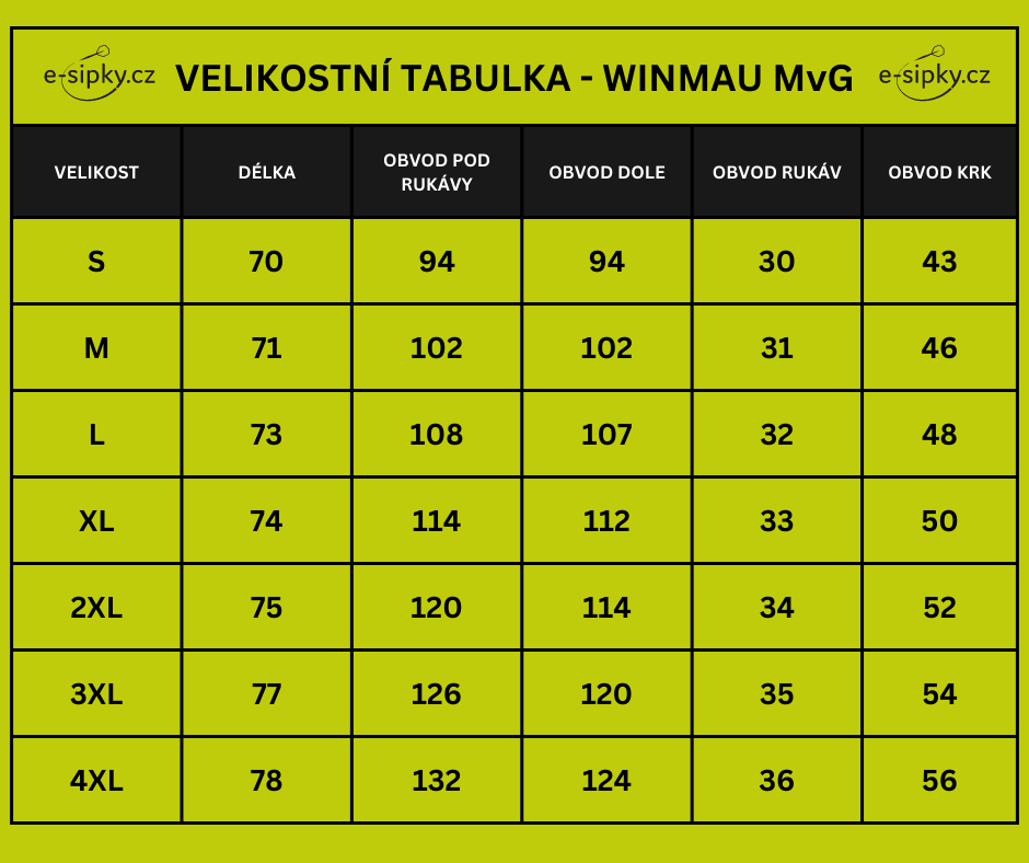 Košile je dostupná ve velikosti S, M, L, XL, 2XL, 3XL, 4XL.