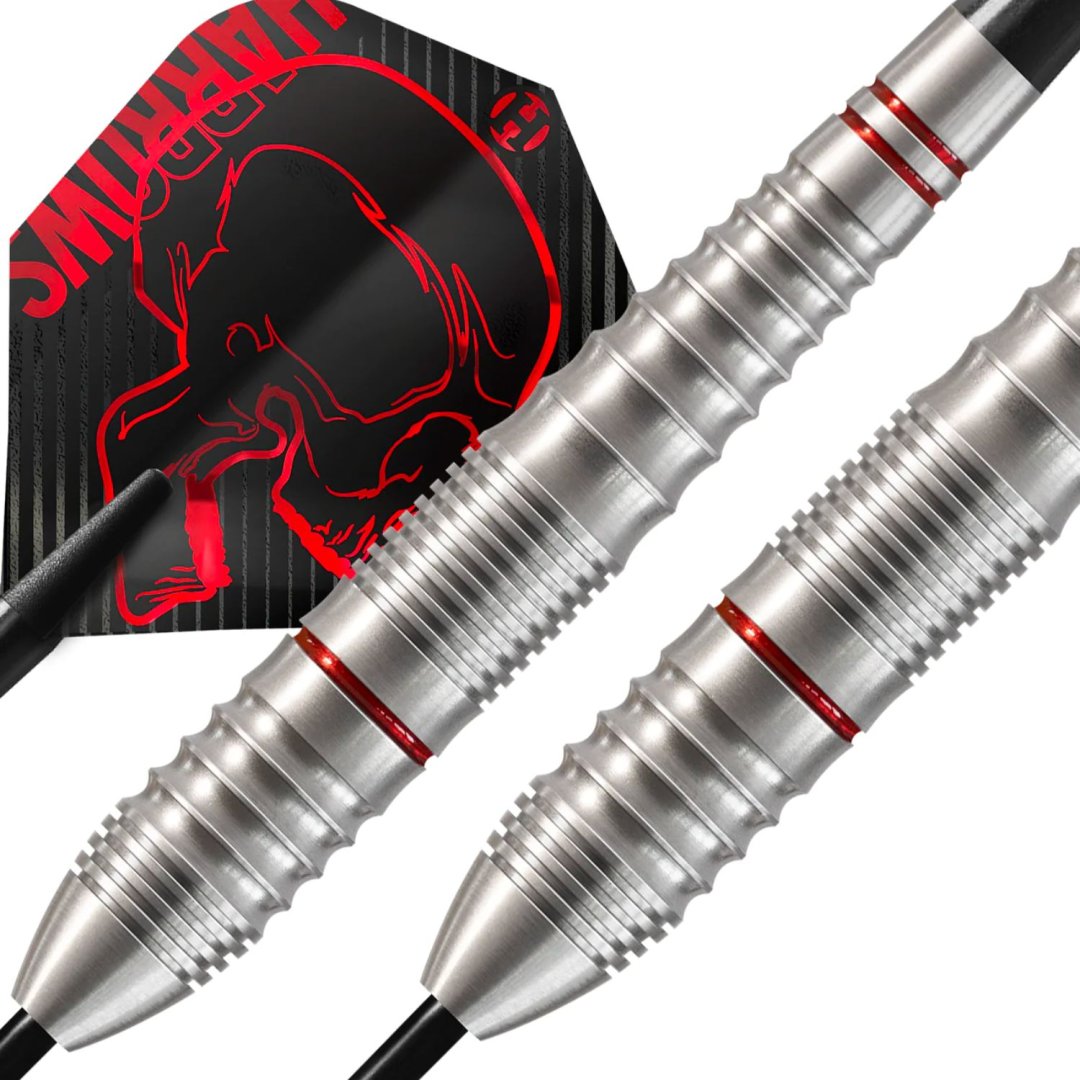 Steelové šipky Rage Steel jsou mosazné šipky s vroubkovanými barrely, které zdobí červené proužky. Matný povrch barrelu dodává šipkám vzhled podobný wolframu.