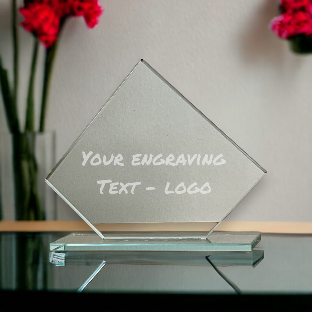 Na trofej lze umístit logo či text laserovým gravírováním (data v křivkách) nebo tiskem.
