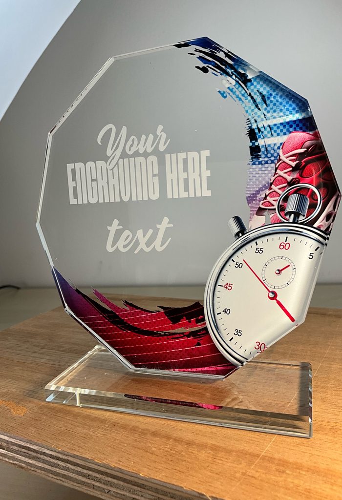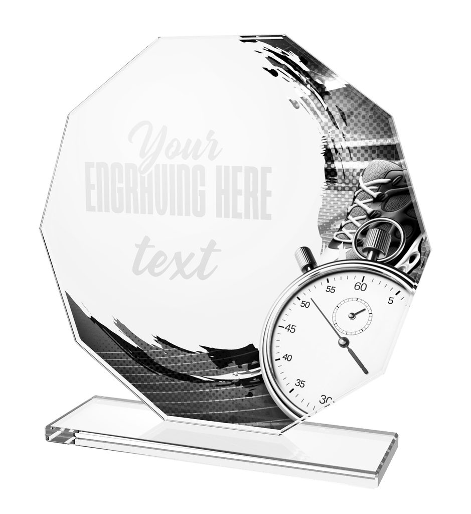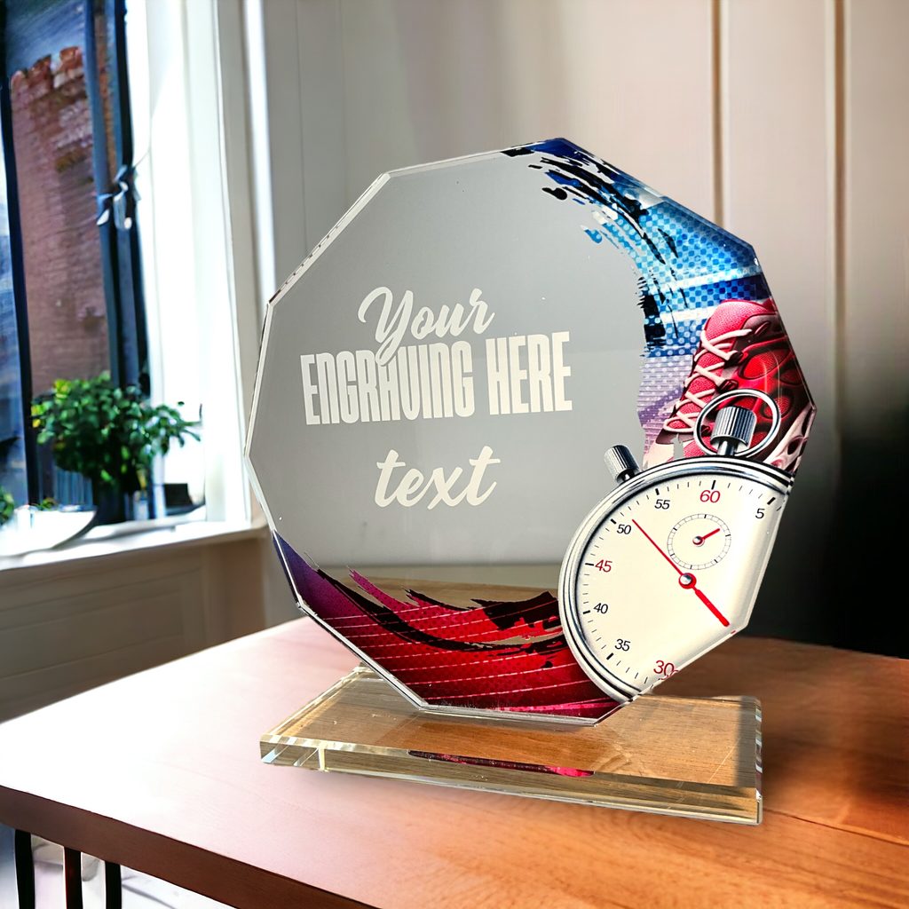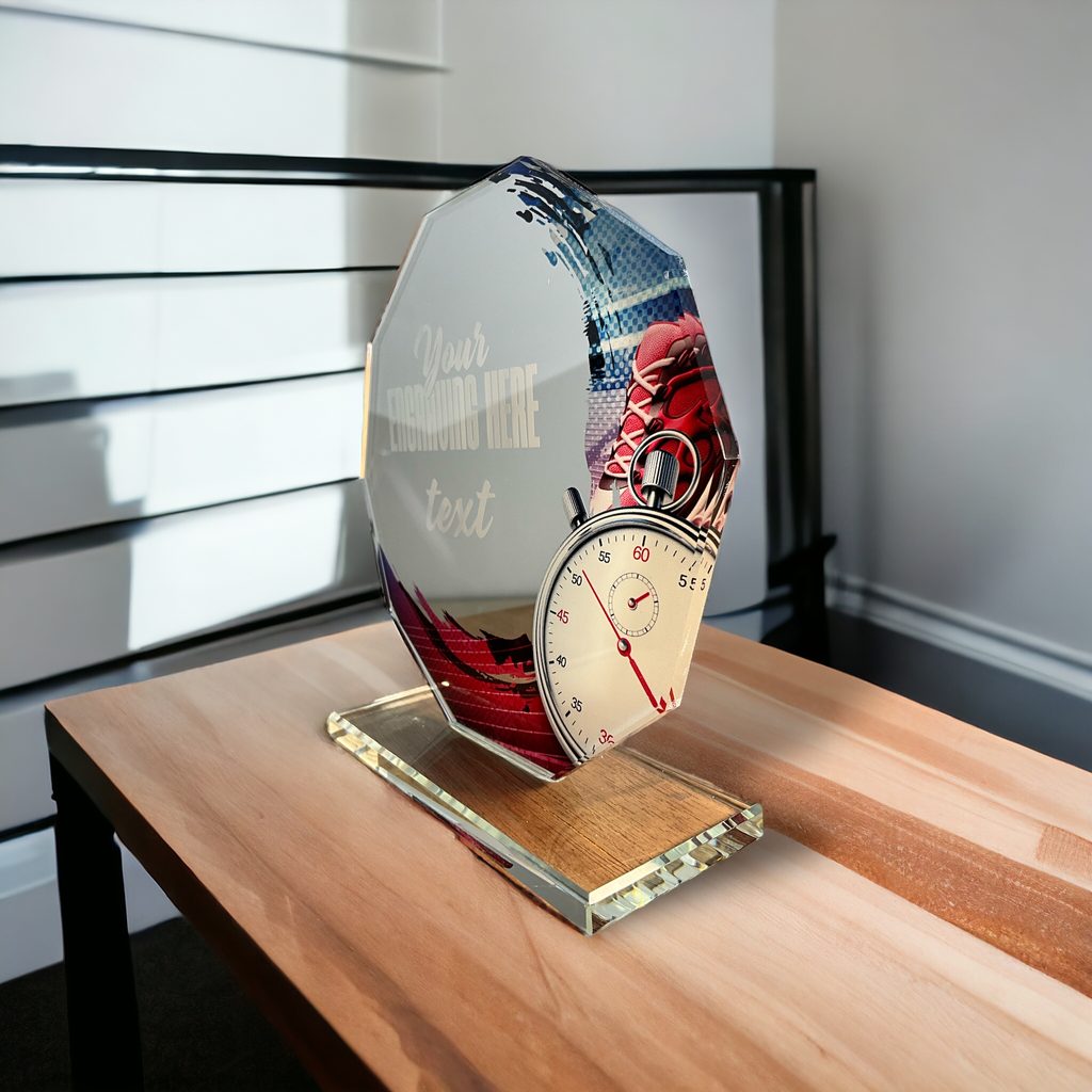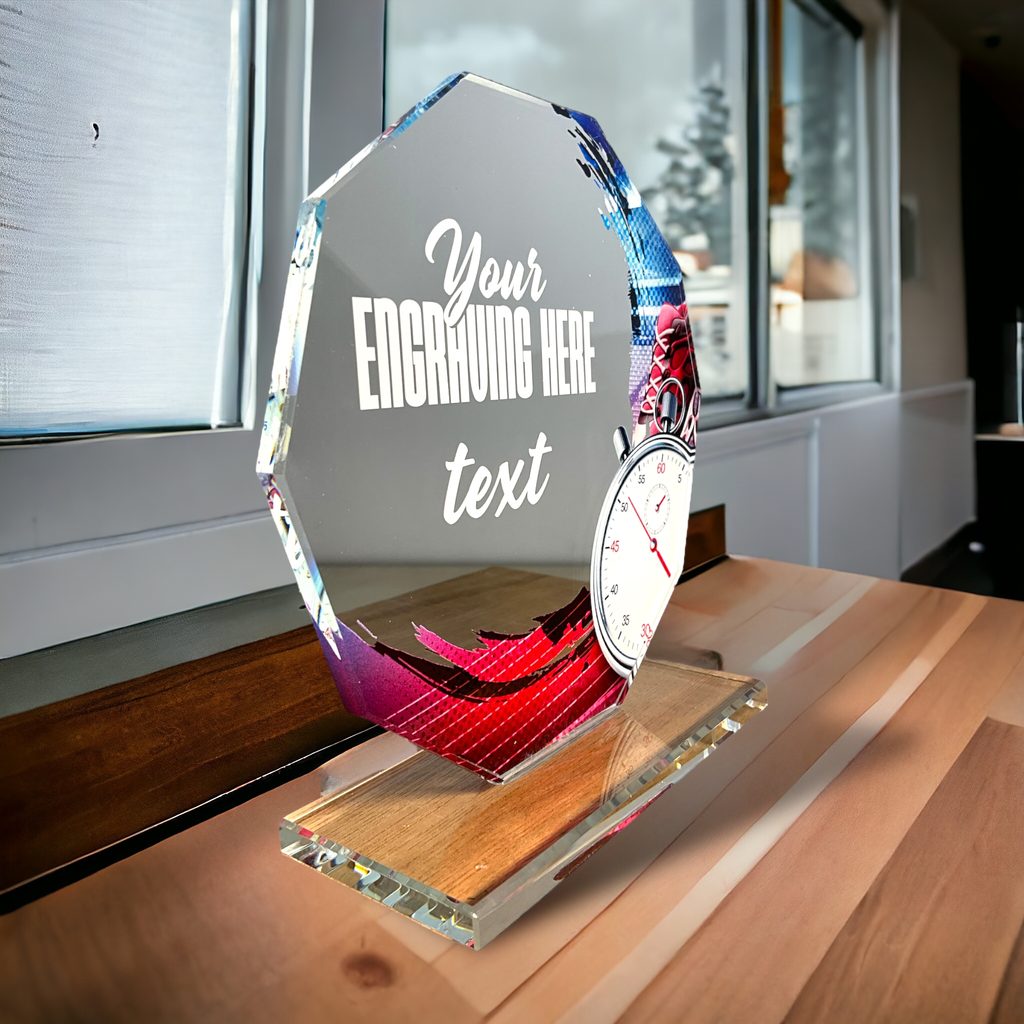 Skleněná trofej s UV HQ tiskem. Možnost laserového gravírování nebo UV HQ tisku.