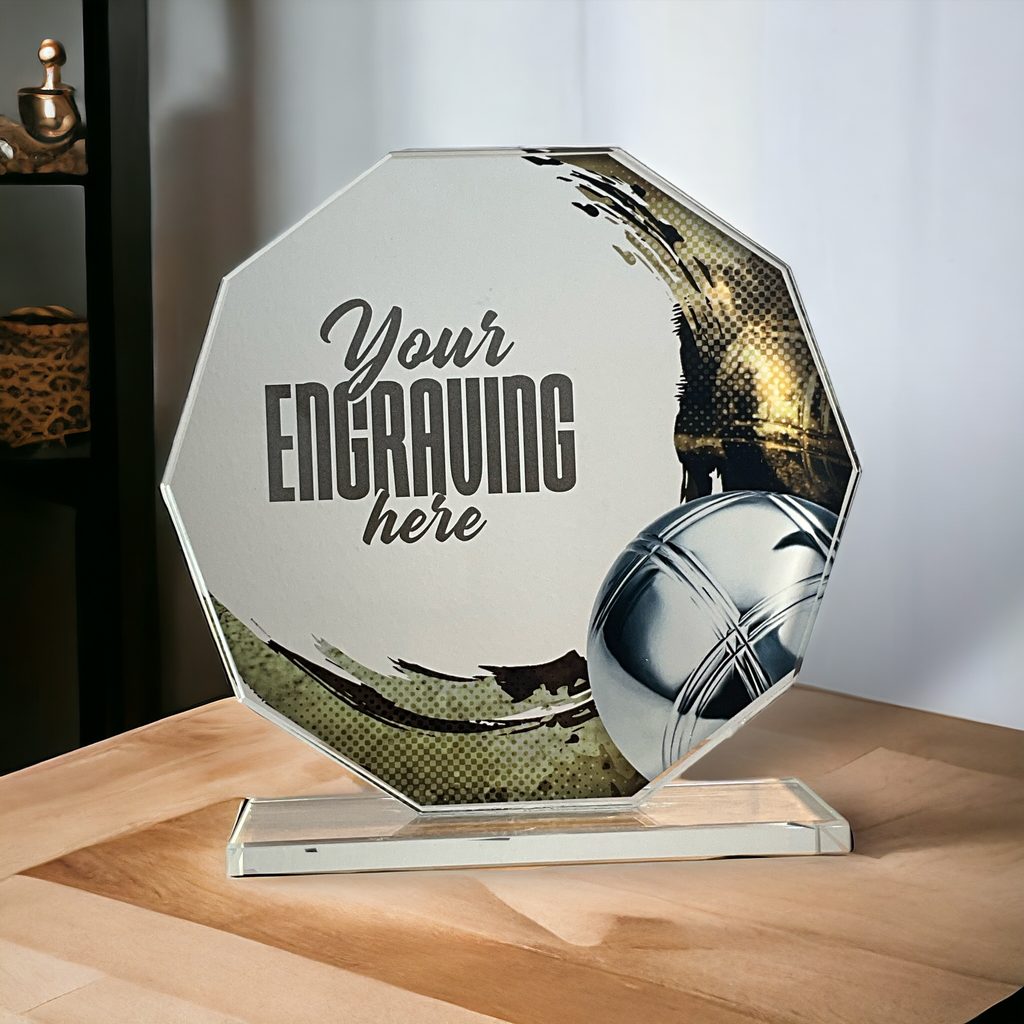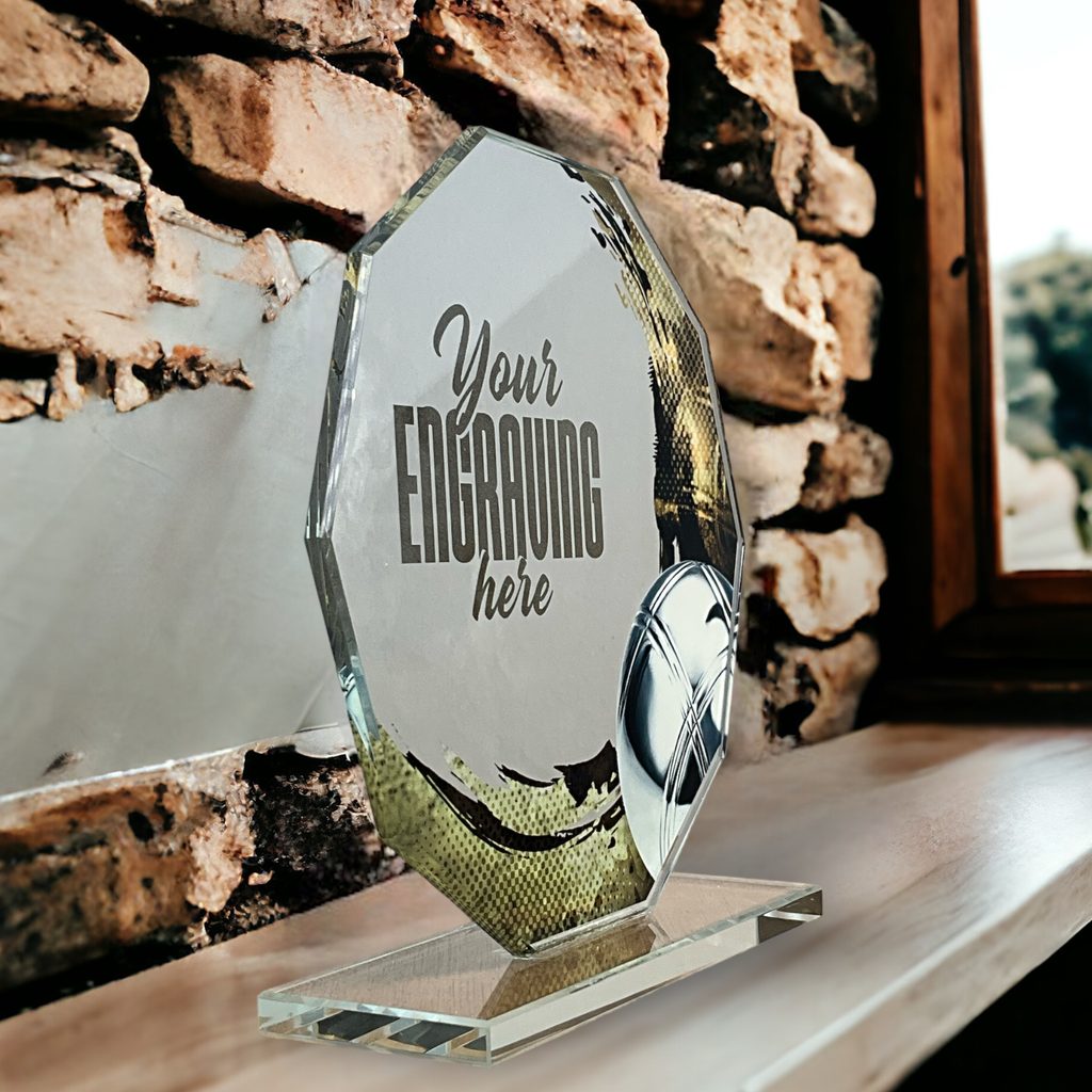 Skleněná trofej s UV HQ tiskem. Motiv v ceně. Možnost laserového gravírování nebo UV HQ tisku. Dárkové balení.