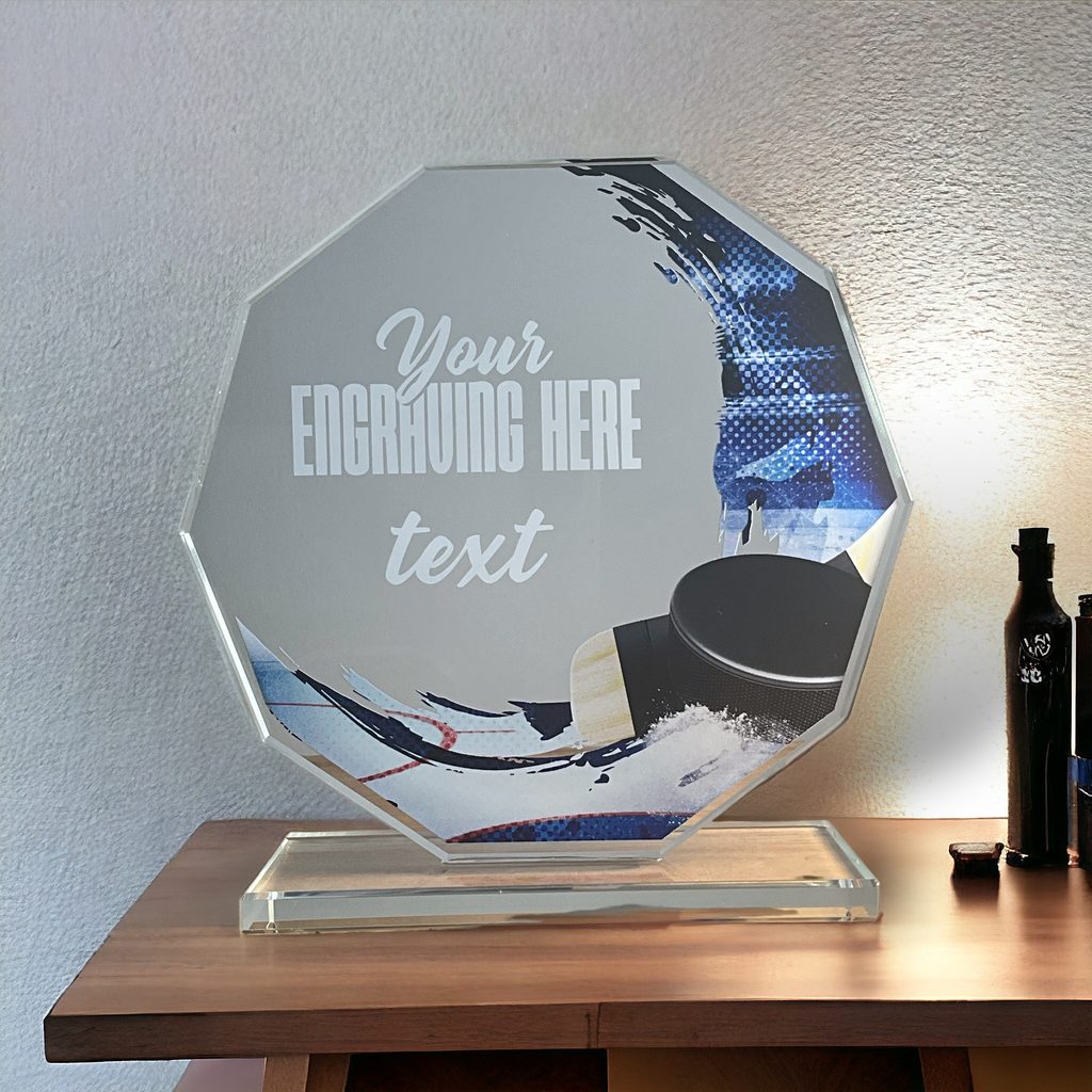 Skleněná trofej s motivem v ceně. Možnost UV HQ tisku.