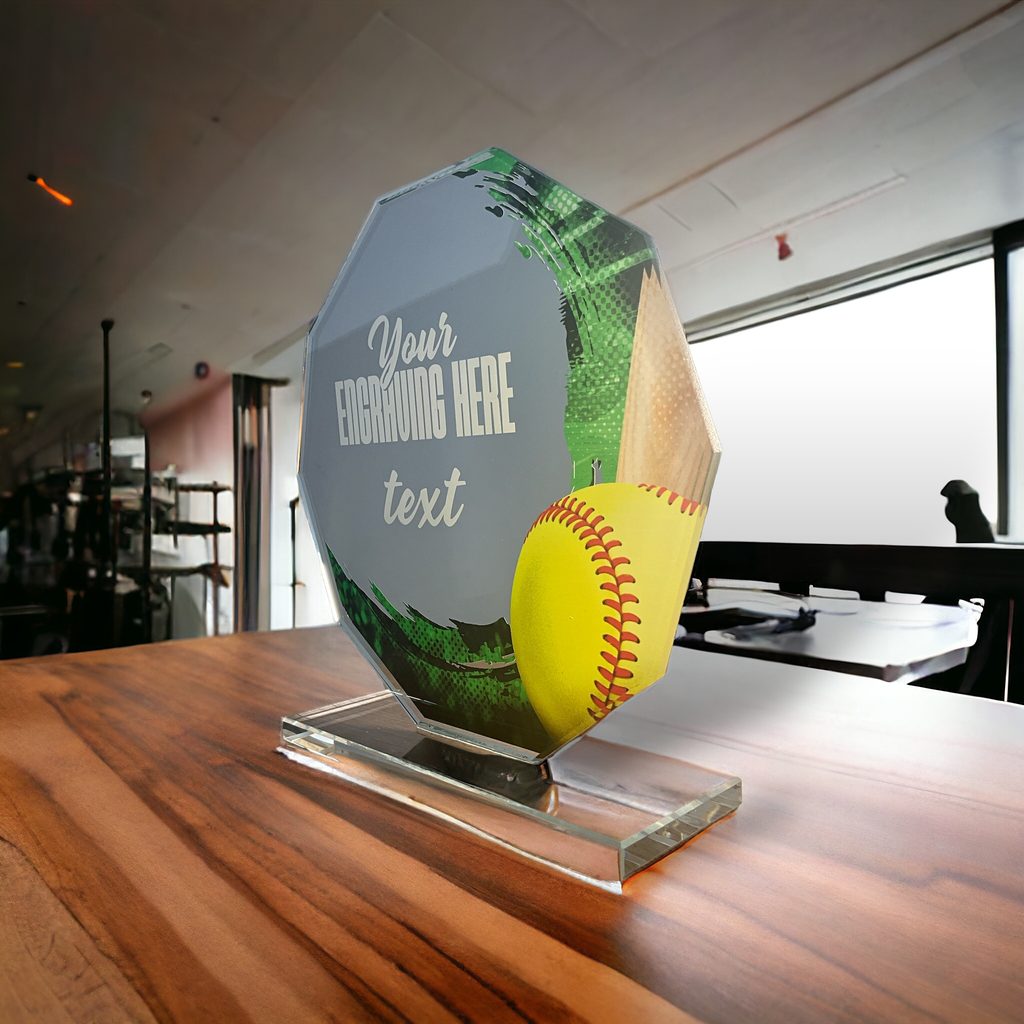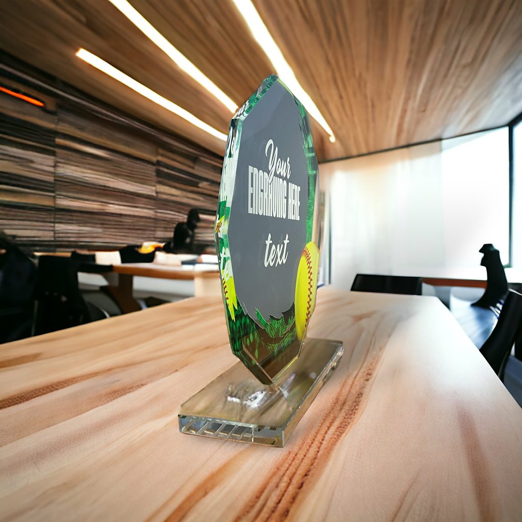 Skleněná trofej s UV HQ tiskem. Možnost laserového gravírování nebo UV HQ tisku. Tisk bílou barvou.