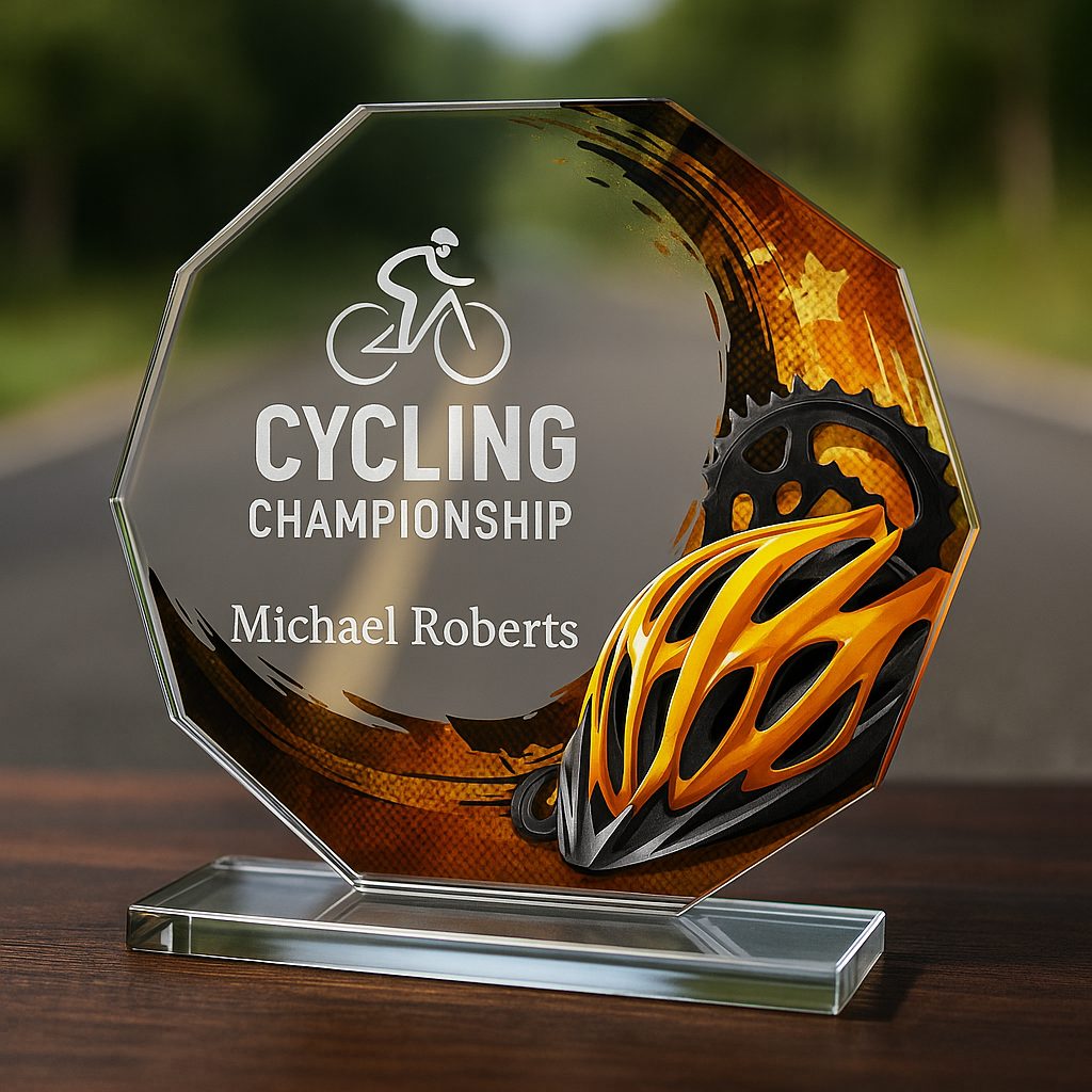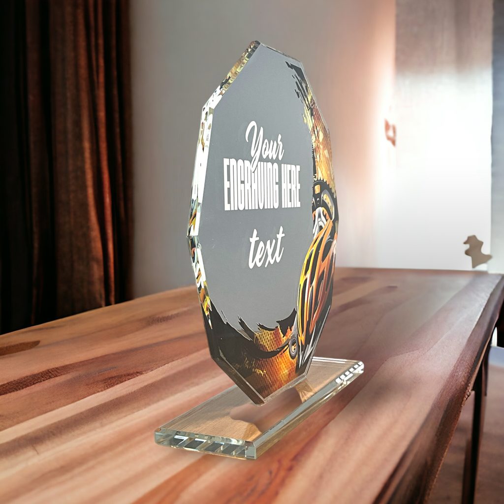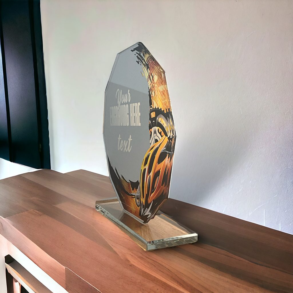 Skleněná trofej s motivem v ceně. Možnost UV HQ tisku.