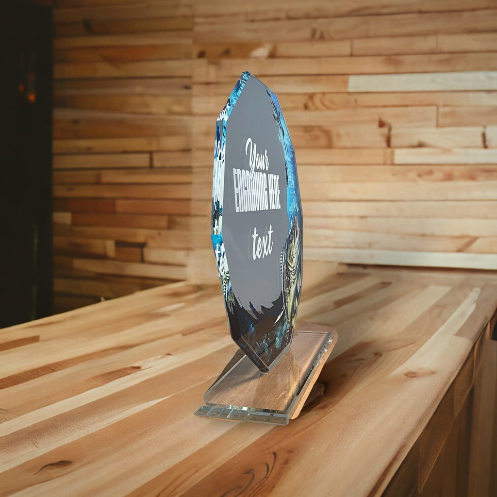 Skleněná trofej s motivem v ceně. Možnost UV HQ tisku.