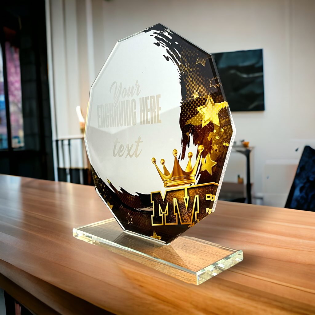 Skleněná trofej s motivem v ceně. Možnost UV HQ tisku.