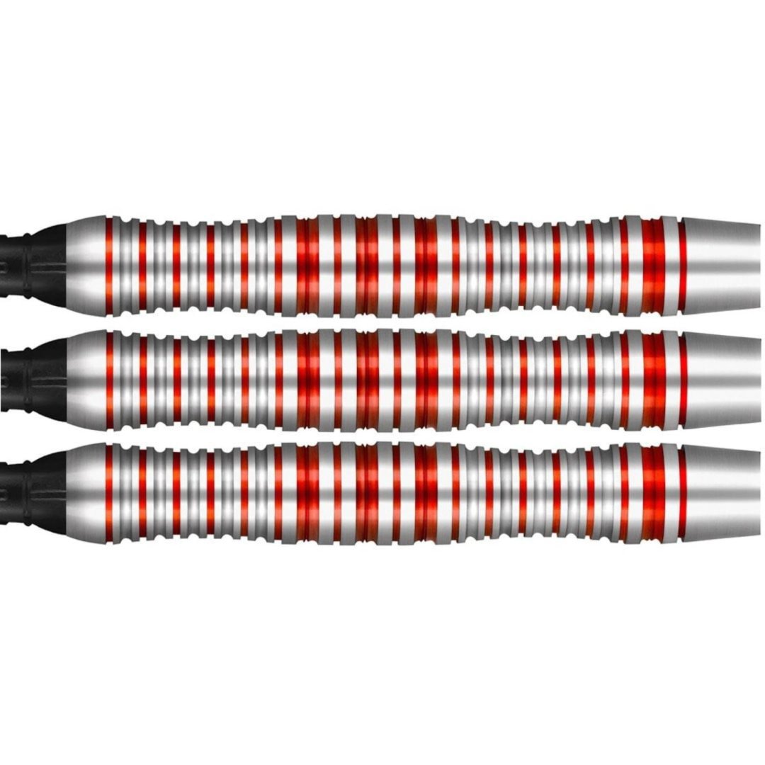 Softové šipky Shot Zen Enso jsou wolframové šipky (80% tungsten) s barrely, které mají červené drážkování.