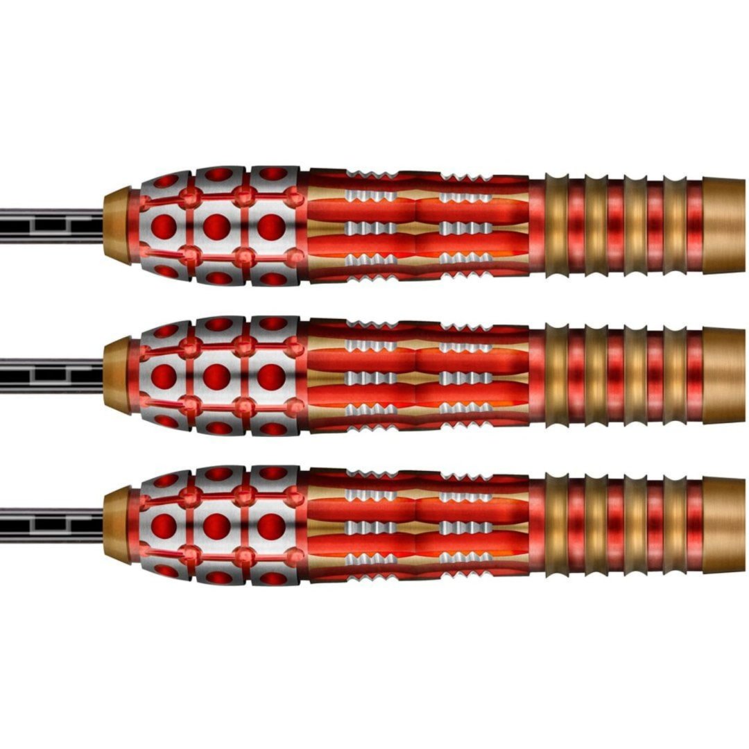 Steelové šipky Shot Roman Empire Centurion jsou wolframové šipky (90% tungsten) s ohnivými barrely. Bronzovo-stříbrné barrely mají drážky zvýrazněné červenou barvou.