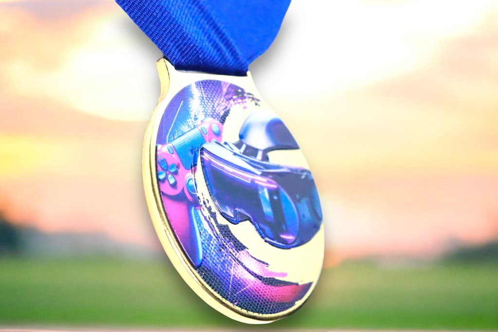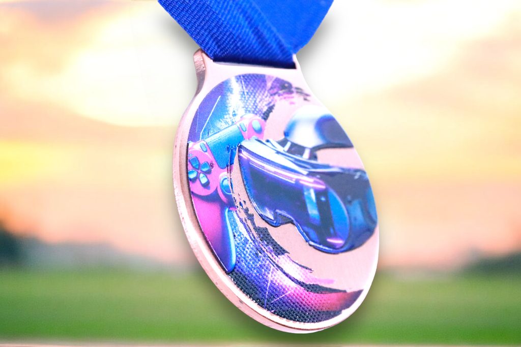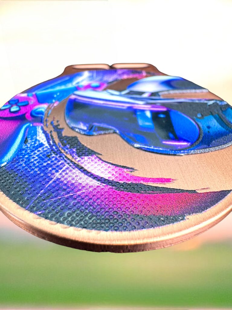 Kovová medaile s UVHQ potiskem a speciálním 3D lakem. Ceny medailí za 1 kus včetně provlékací stuhy.