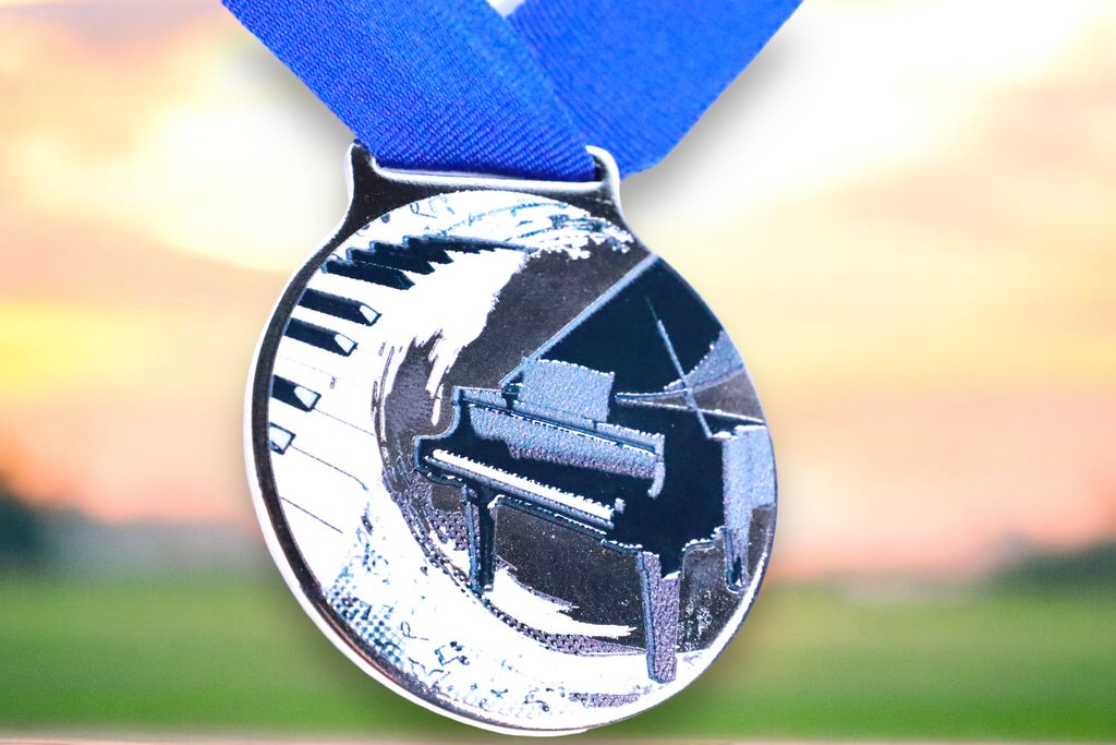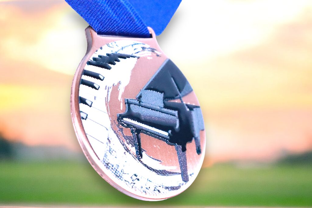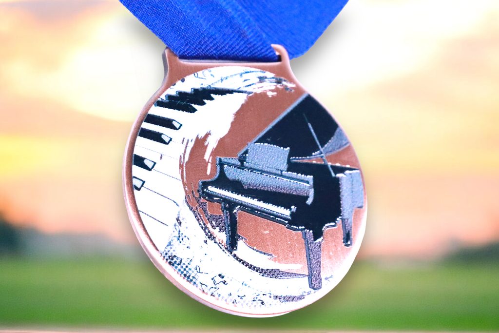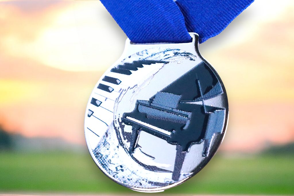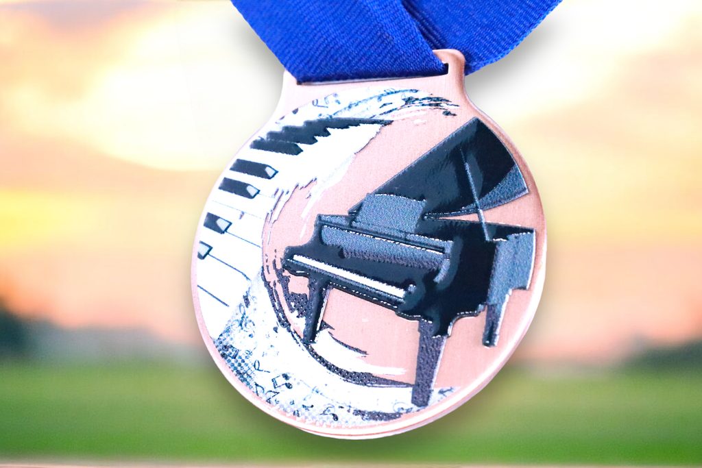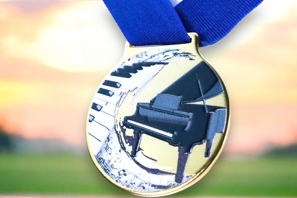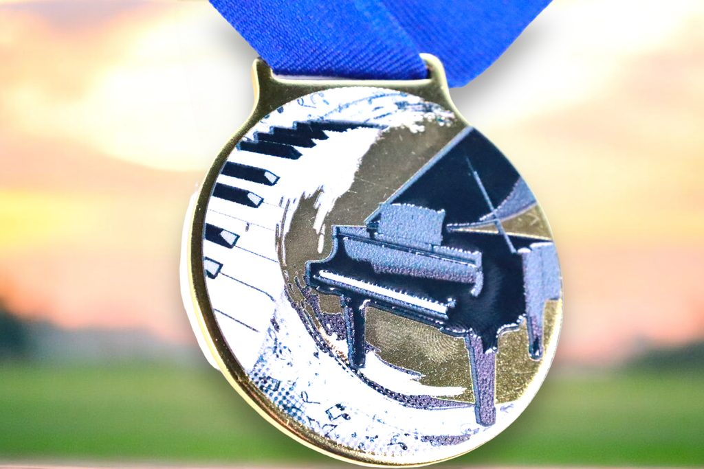 Kovová medaile s UVHQ potiskem a speciálním 3D lakem. Ceny medailí za 1 kus včetně stuhy.