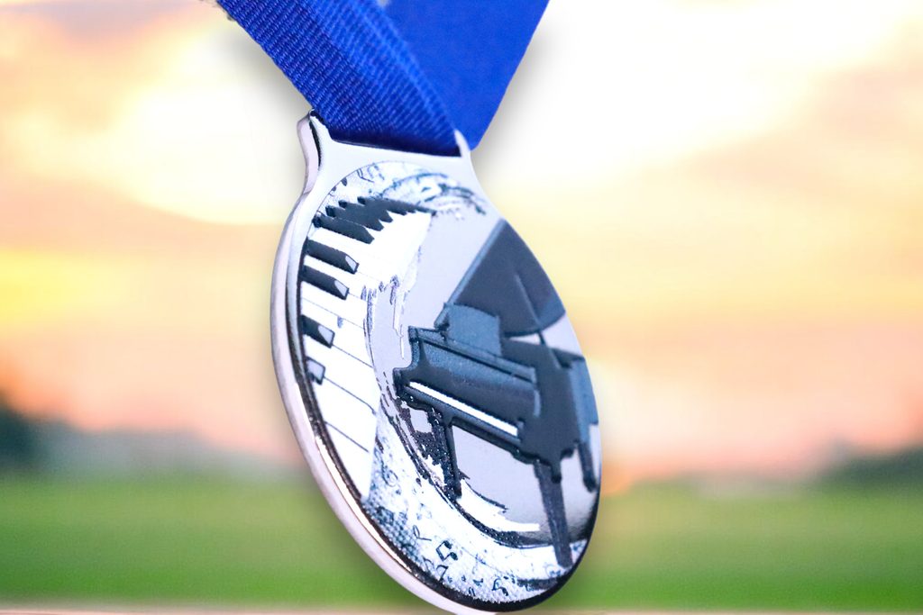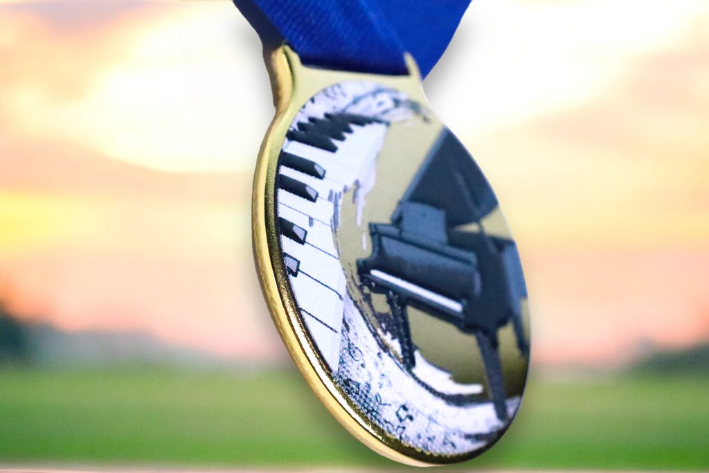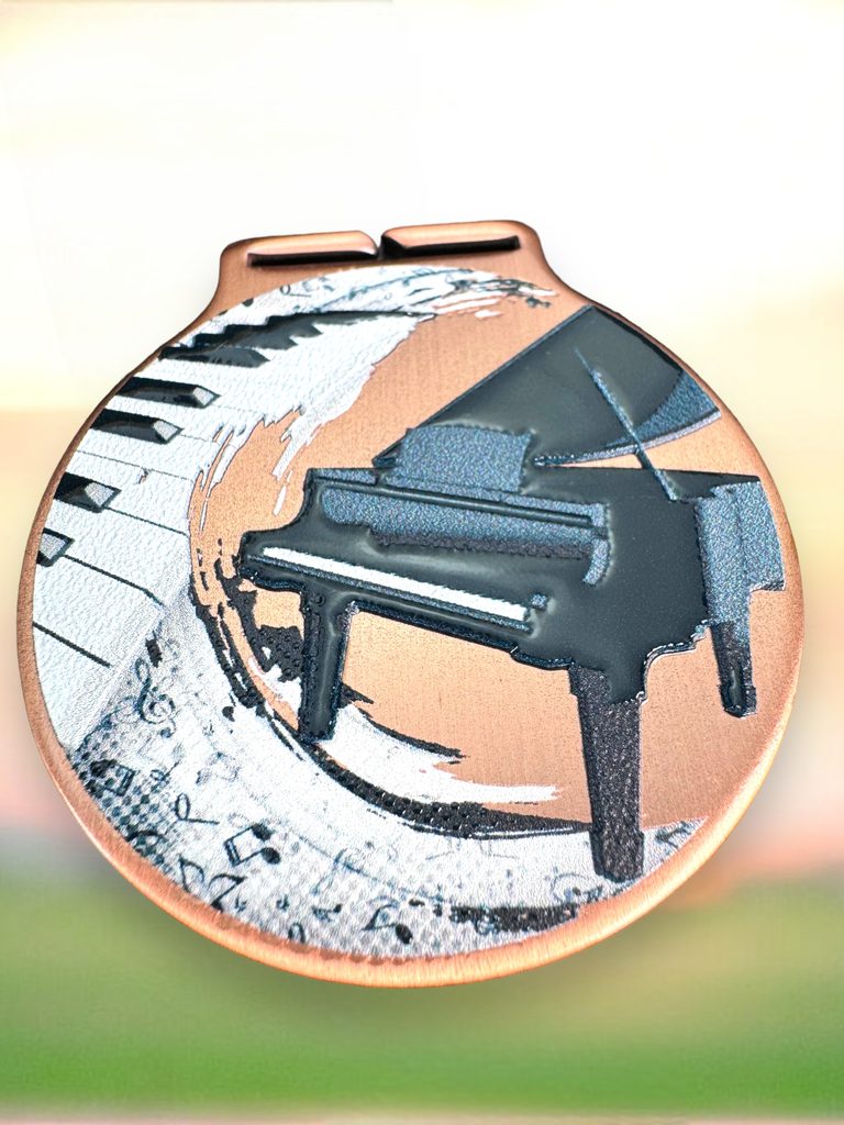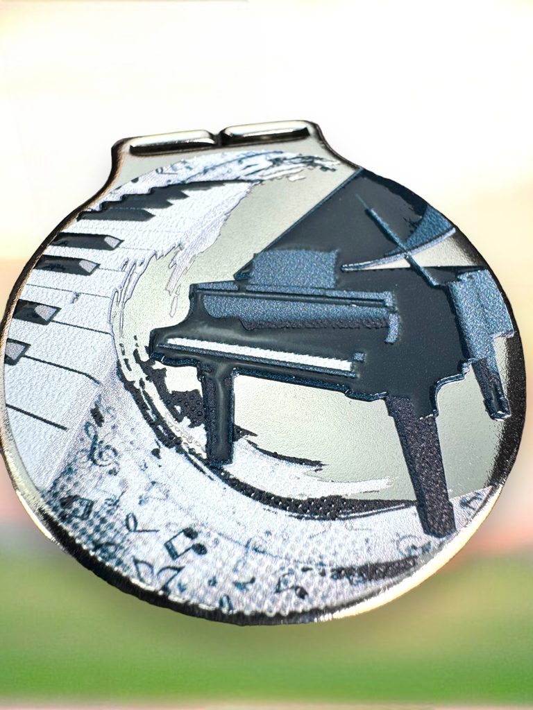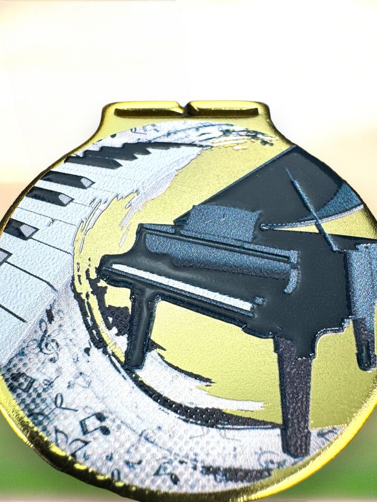 Kovová medaile s UVHQ potiskem a speciálním 3D lakem. Ceny medailí za 1 kus včetně provlékací stuhy.