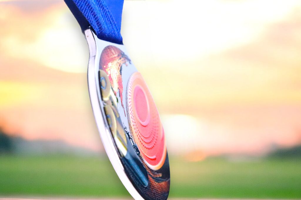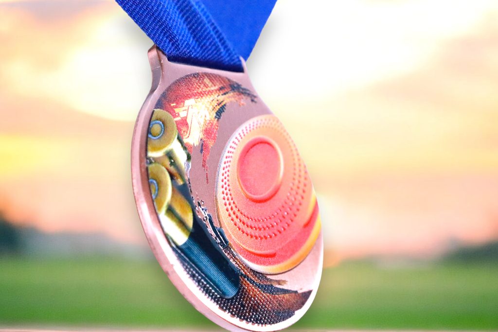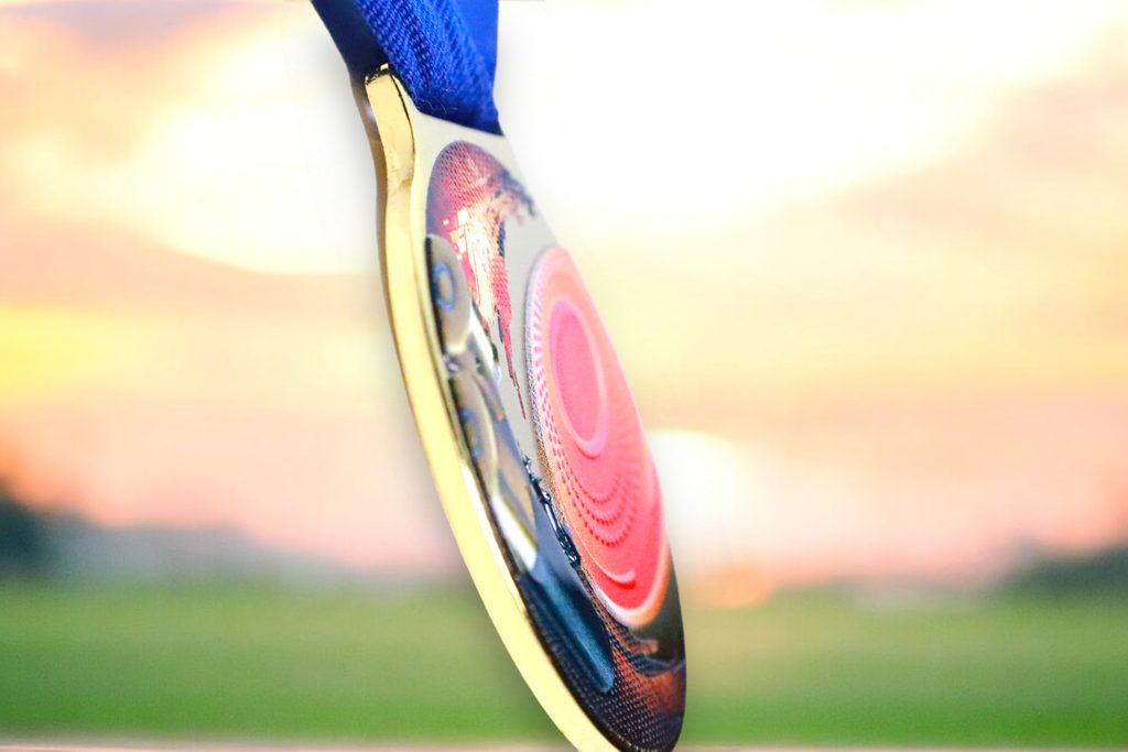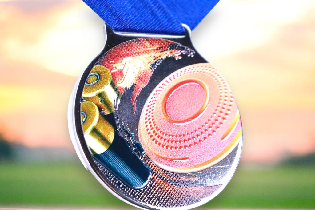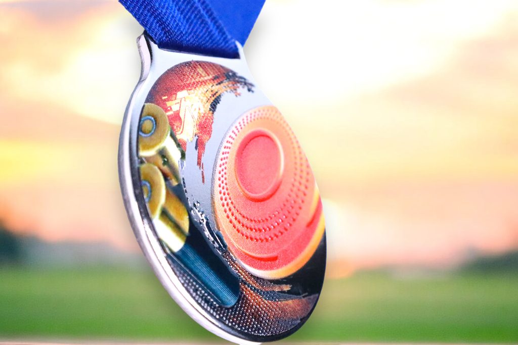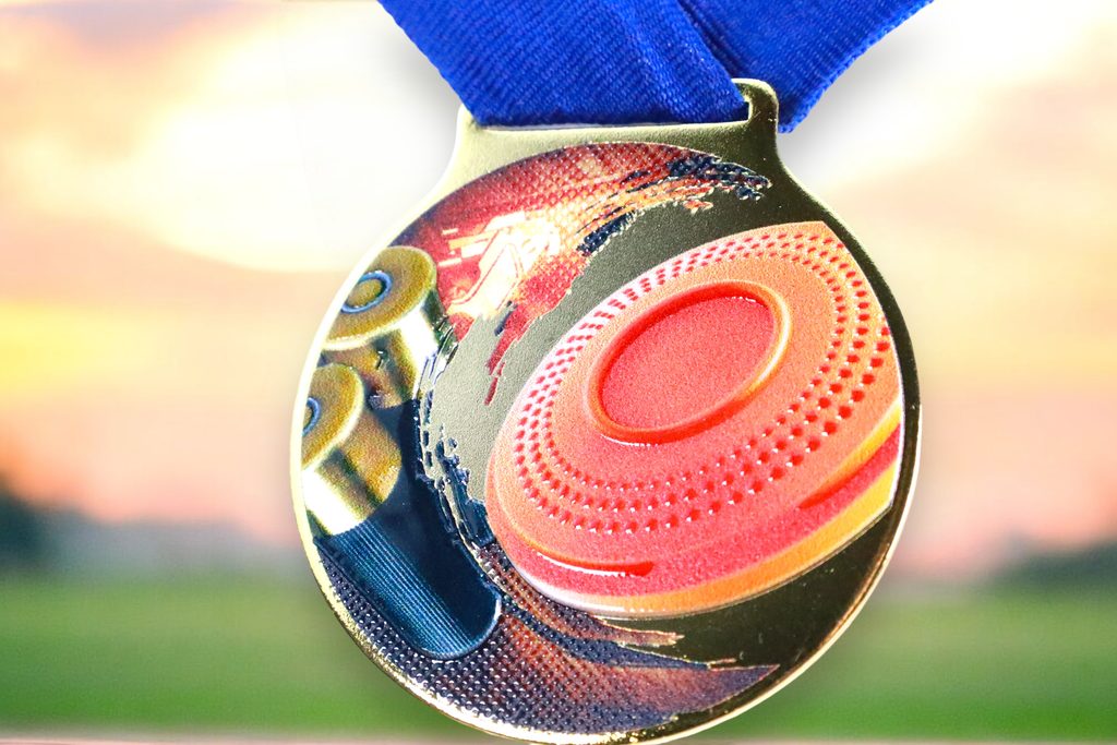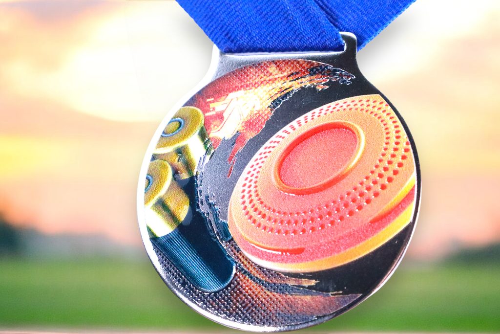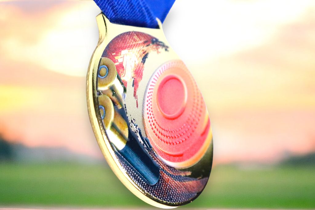 Kovová medaile s UVHQ potiskem a speciálním 3D lakem. Ceny medailí za 1 kus včetně provlékací stuhy.