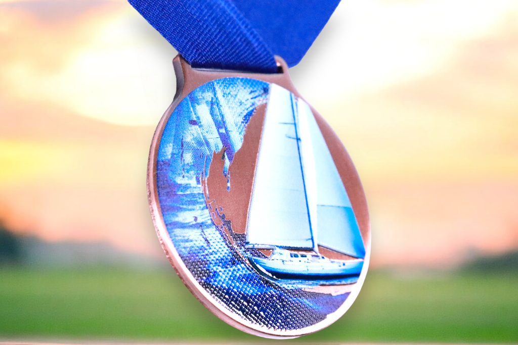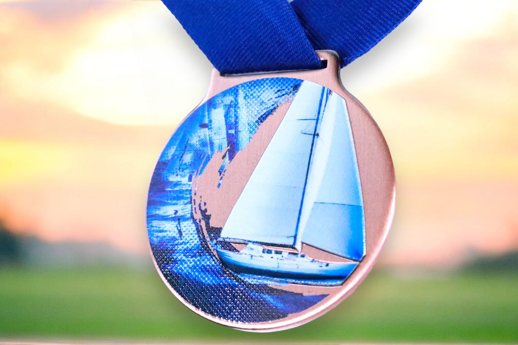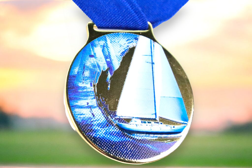 Kovová medaile s UVHQ potiskem a speciálním 3D lakem. Ceny medailí za 1 kus včetně provlékací stuhy.