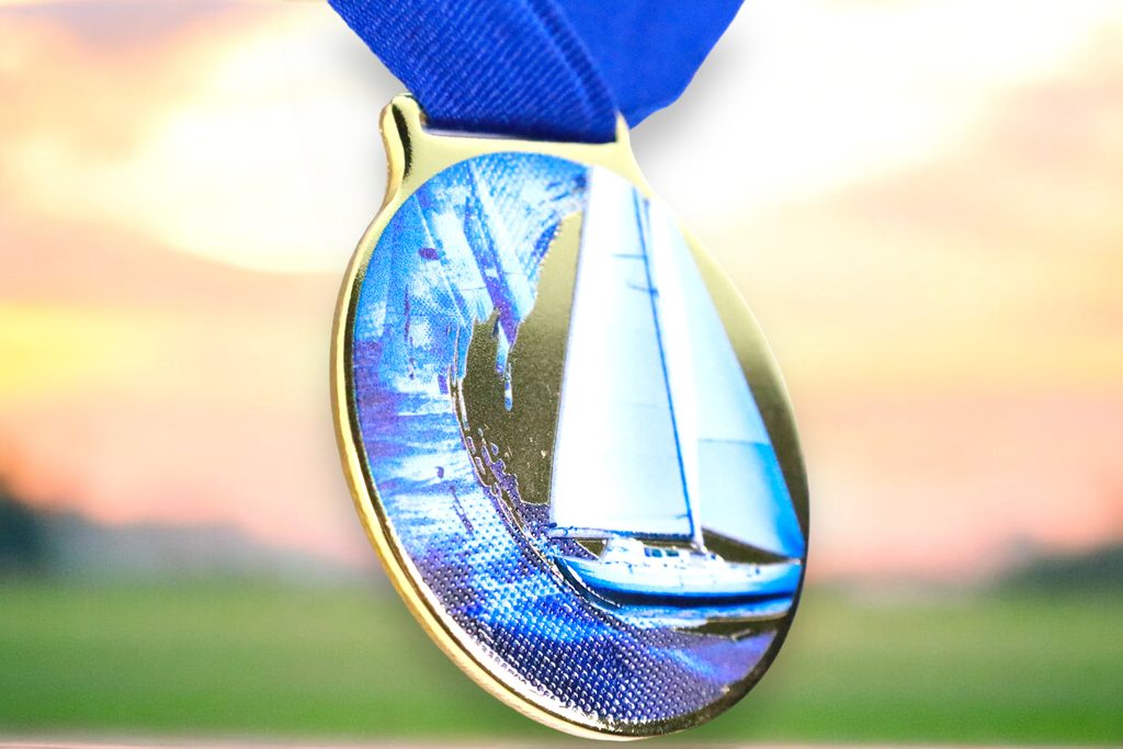 Kovová medaile s UVHQ potiskem a speciálním 3D lakem. Ceny medailí za 1 kus včetně stuhy.