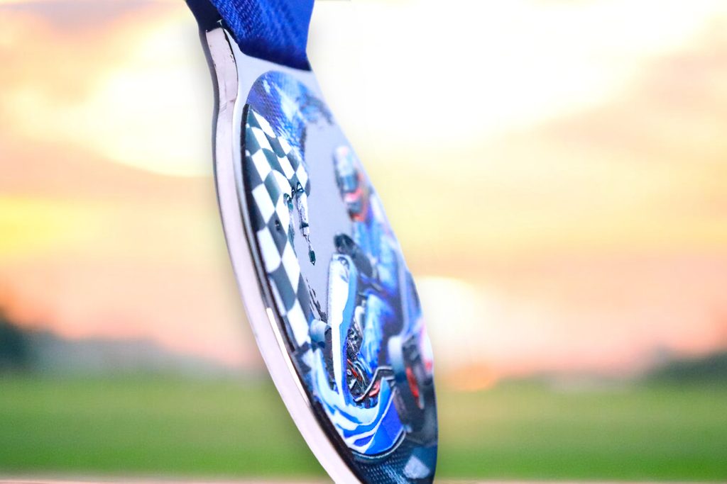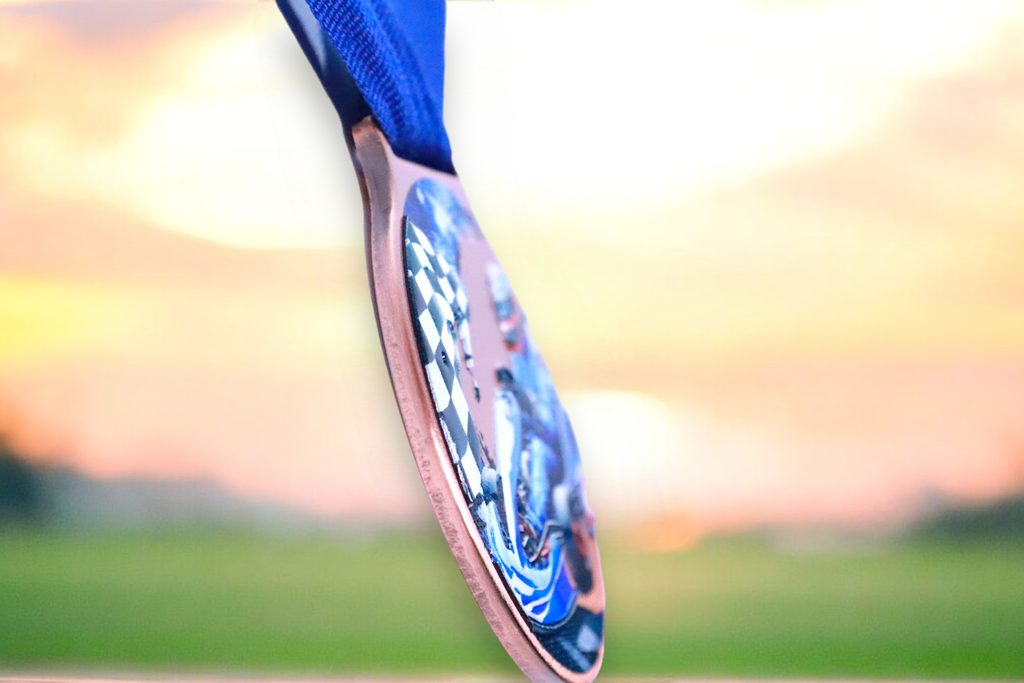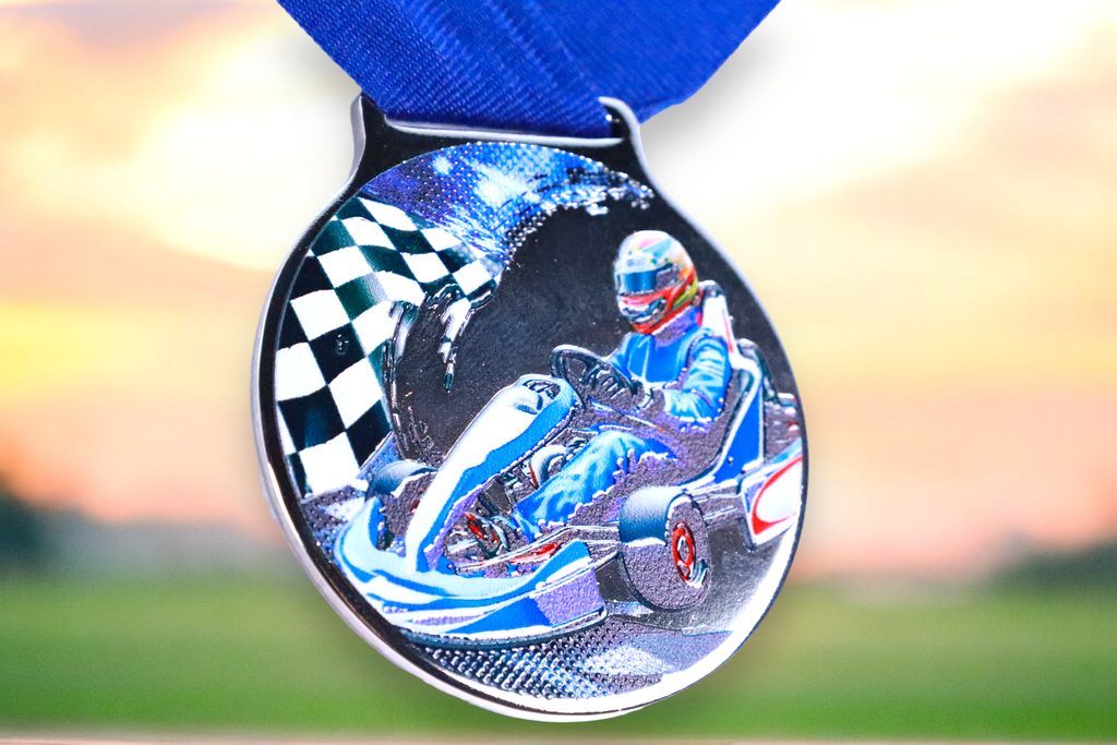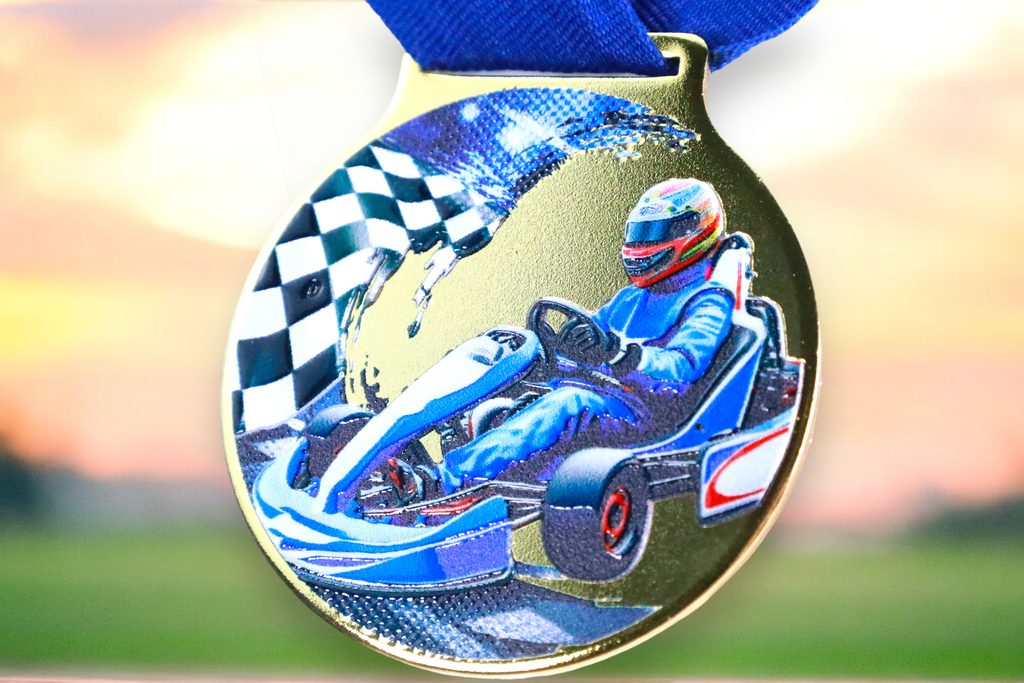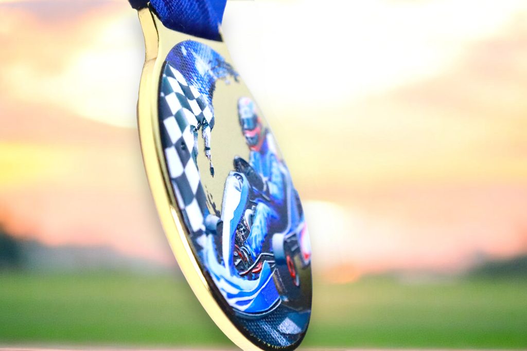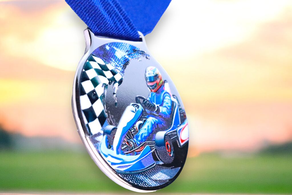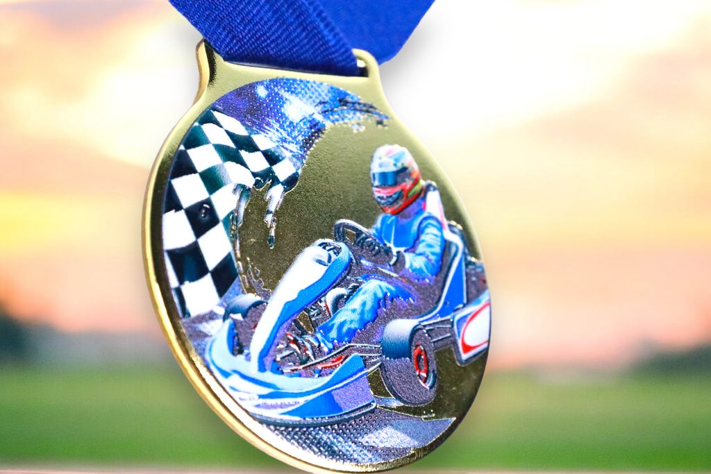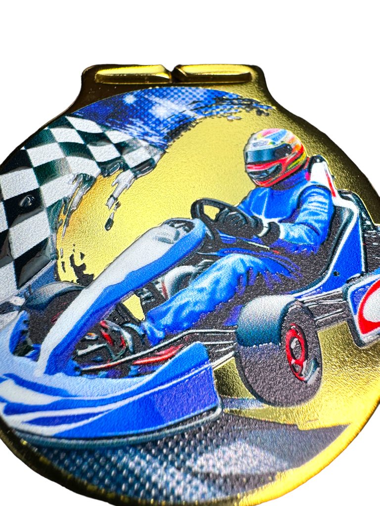 Kovová medaile s UVHQ potiskem a speciálním 3D lakem. Ceny medailí za 1 kus včetně provlékací stuhy.