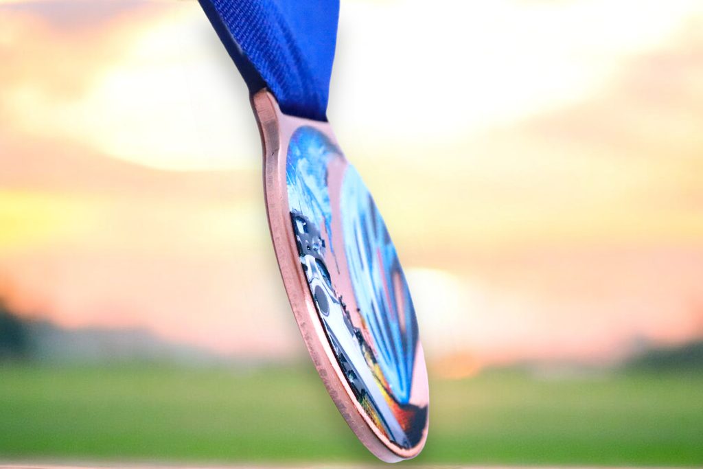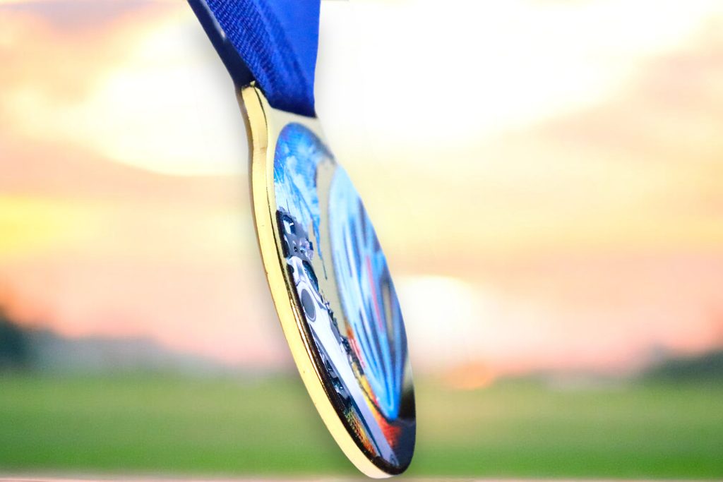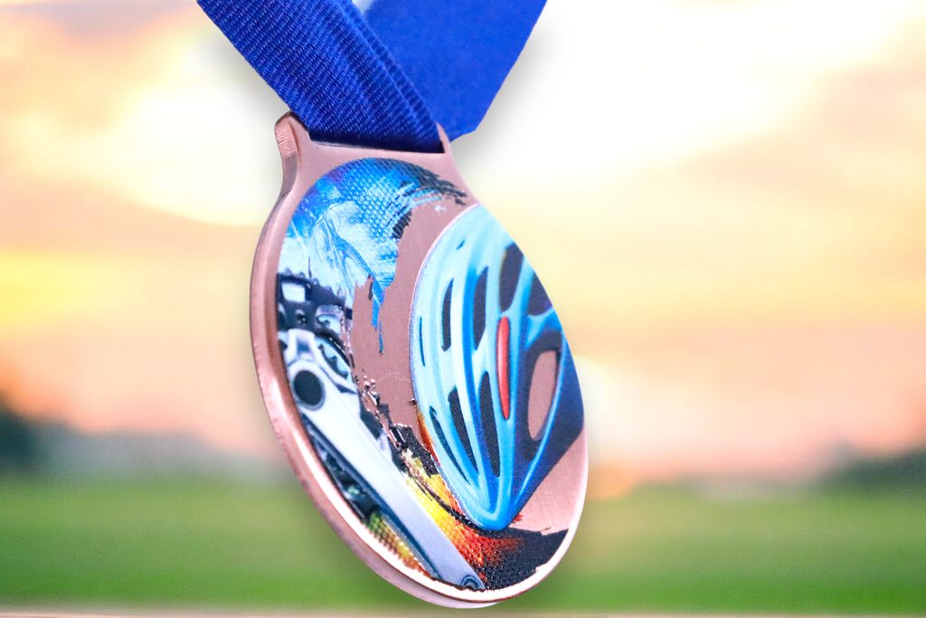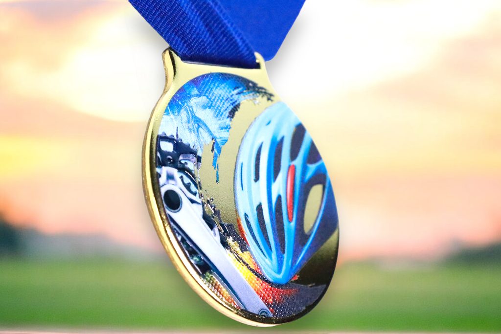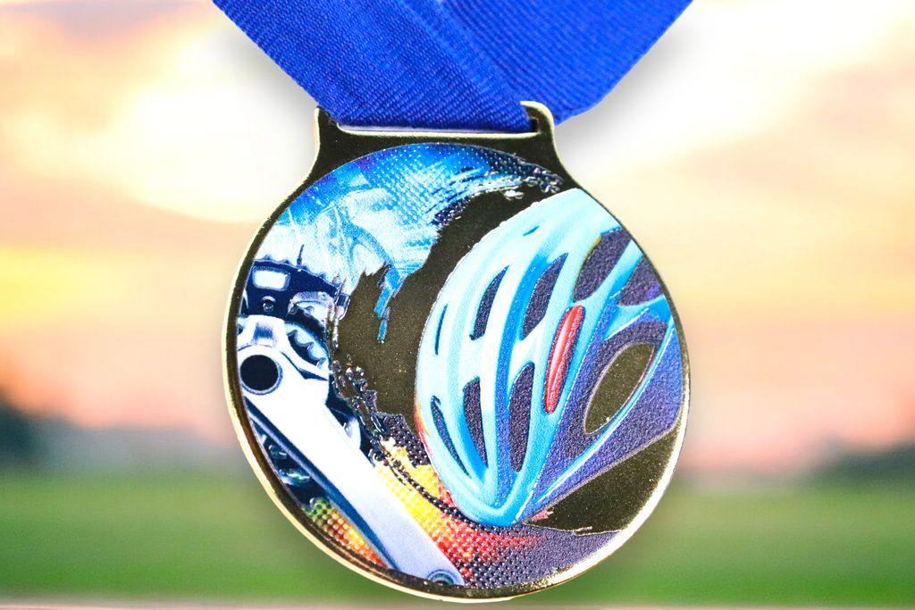 Kovová medaile s UVHQ potiskem a speciálním 3D lakem. Ceny medailí za 1 kus včetně provlékací stuhy.